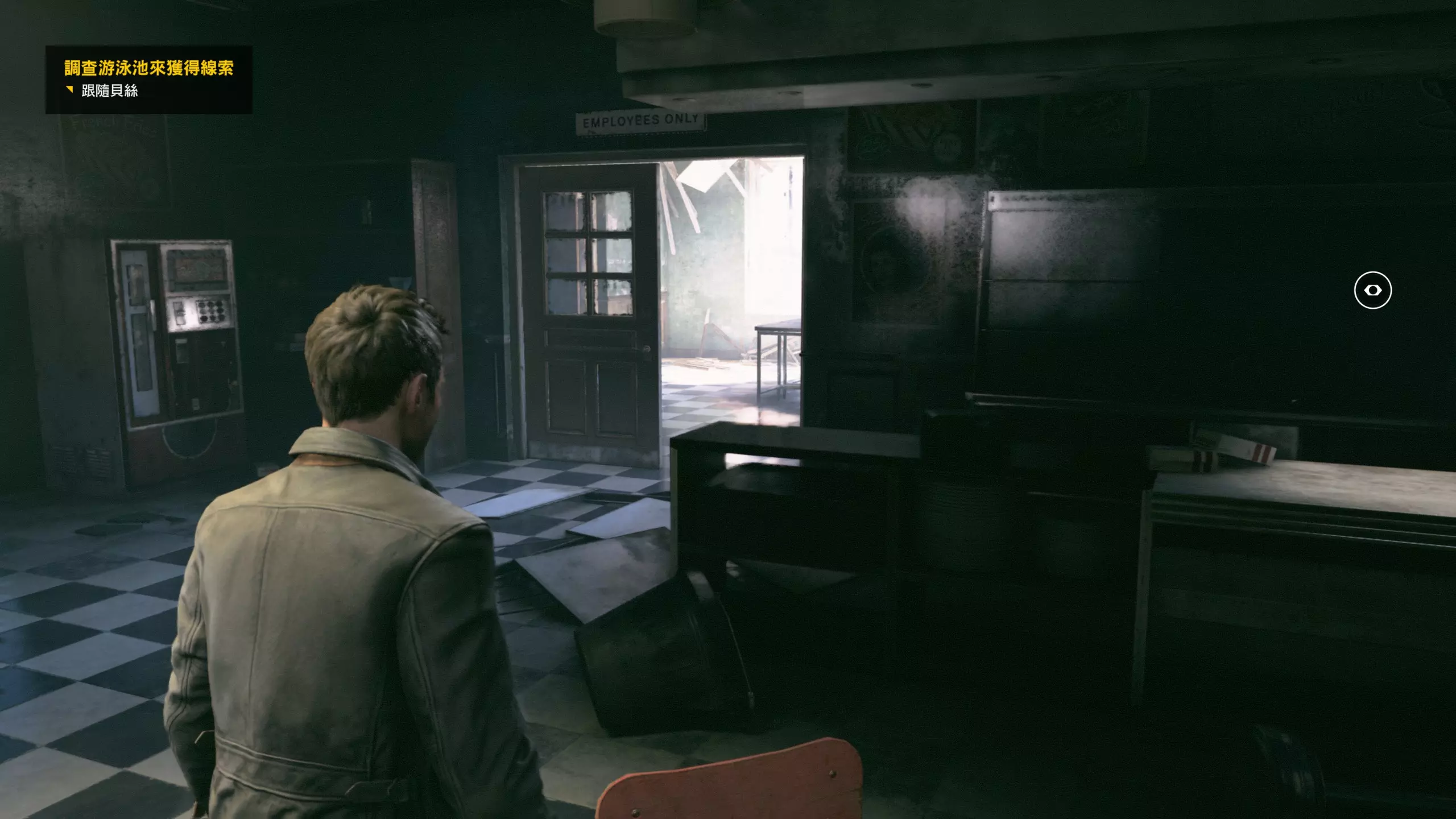 5.打开一层大门后跟随流程,与贝丝一起撞开一扇门后到达指定位置,先进入那个顶上有【出口】牌子的入口,走到头右转直行到尽头的房间内,可找到第4/5个时元之源。