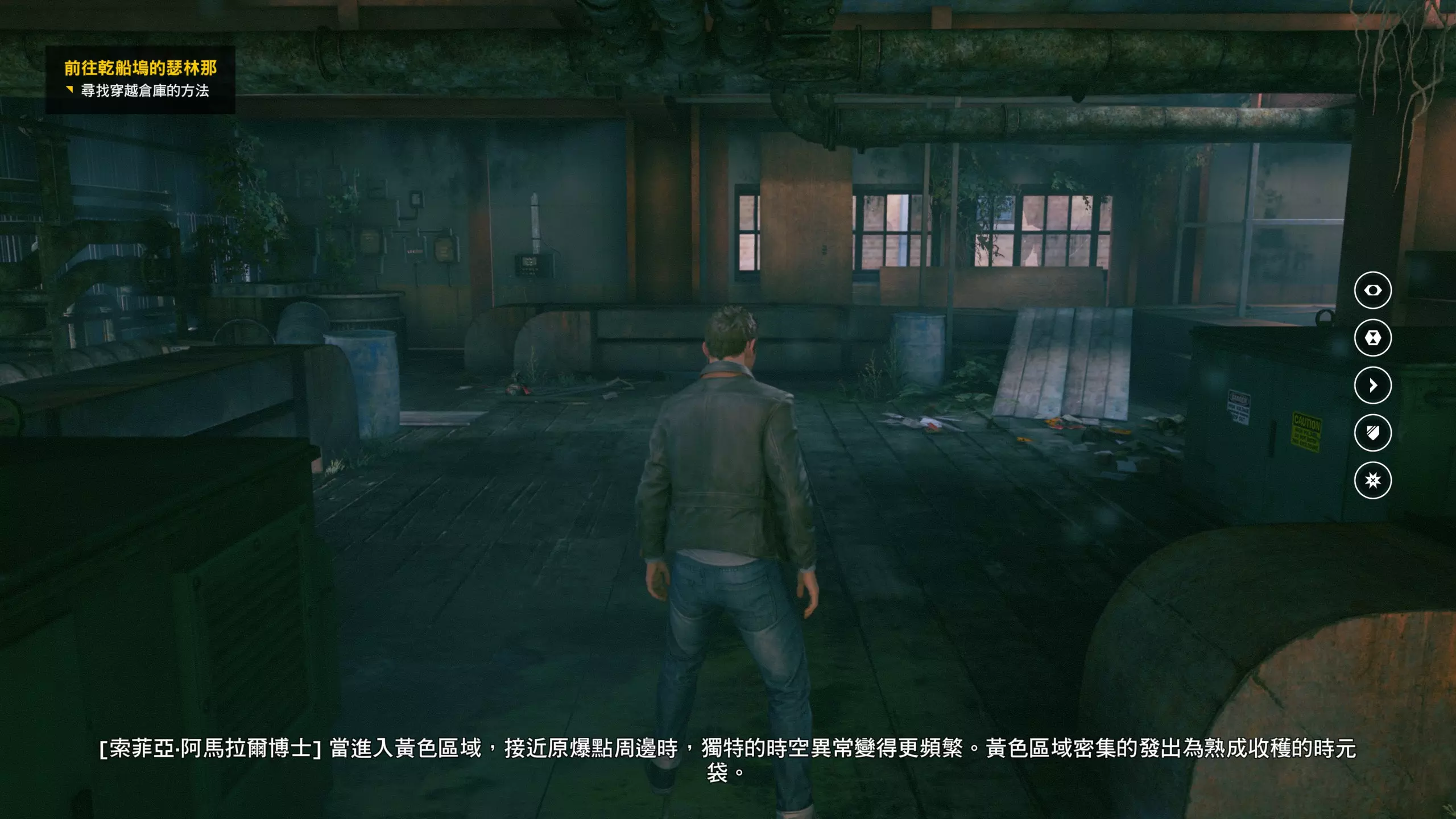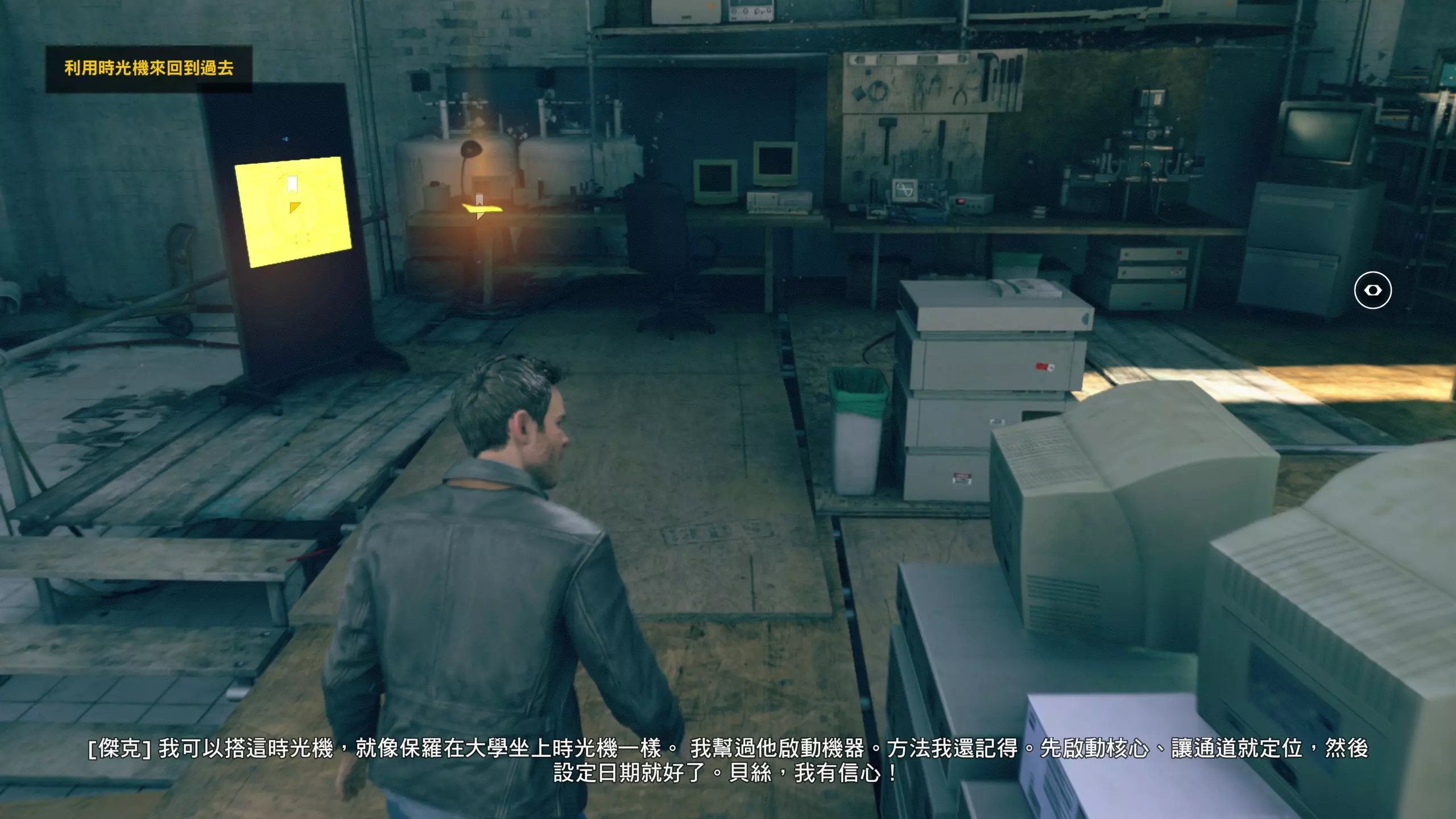 8.操作完两个机关并激活时光机后,先不要急着靠近时光机入口(会触发过场动画且无法回头),先与尼克对话(就是之前通过对话收集本节电脑收集品的那名女性),可获得【量子涟漪】1/1,这个收集品很容易错过。