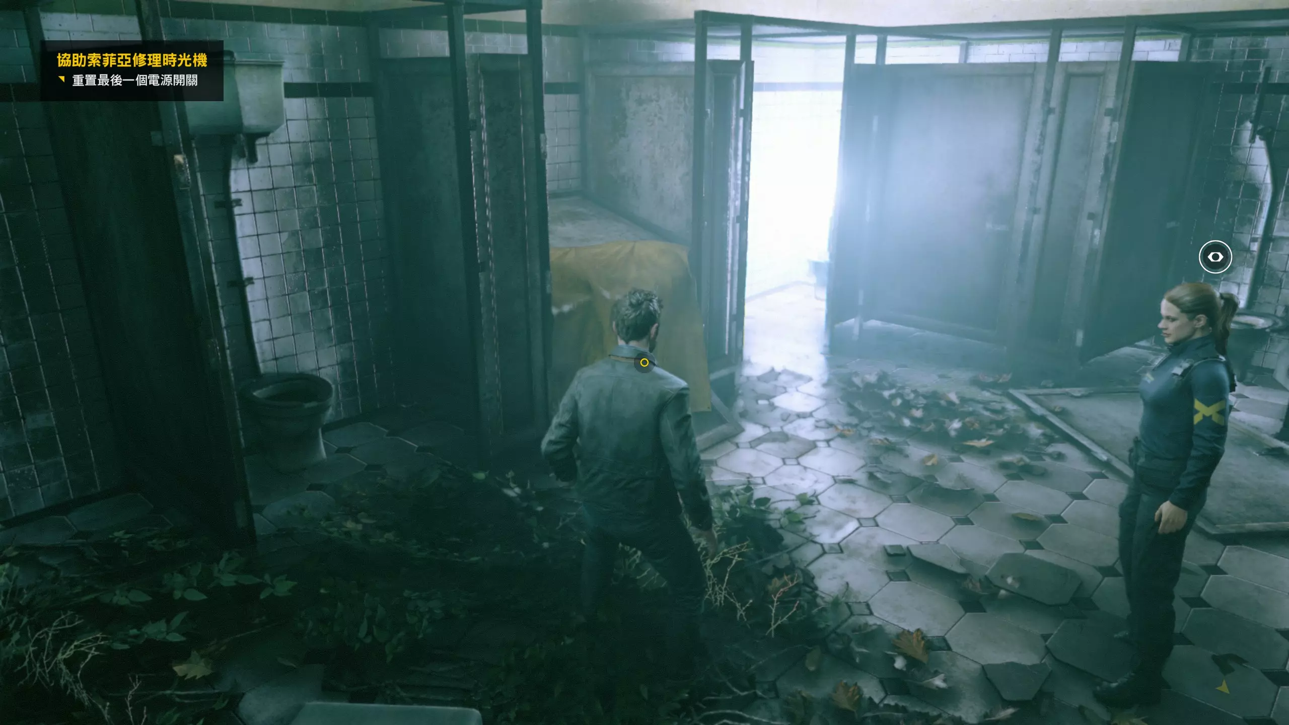 6.接着来到卫生间(卫生间的这个门可以开了),需要爬到高处继续前进,在一个隔间内可找到第2/3个【时元之源】。