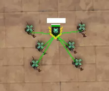 命令所有步兵相互保持距离,在军官周围组成V形队列。这有助于躲避范围伤害并保护军官。--线形队列--