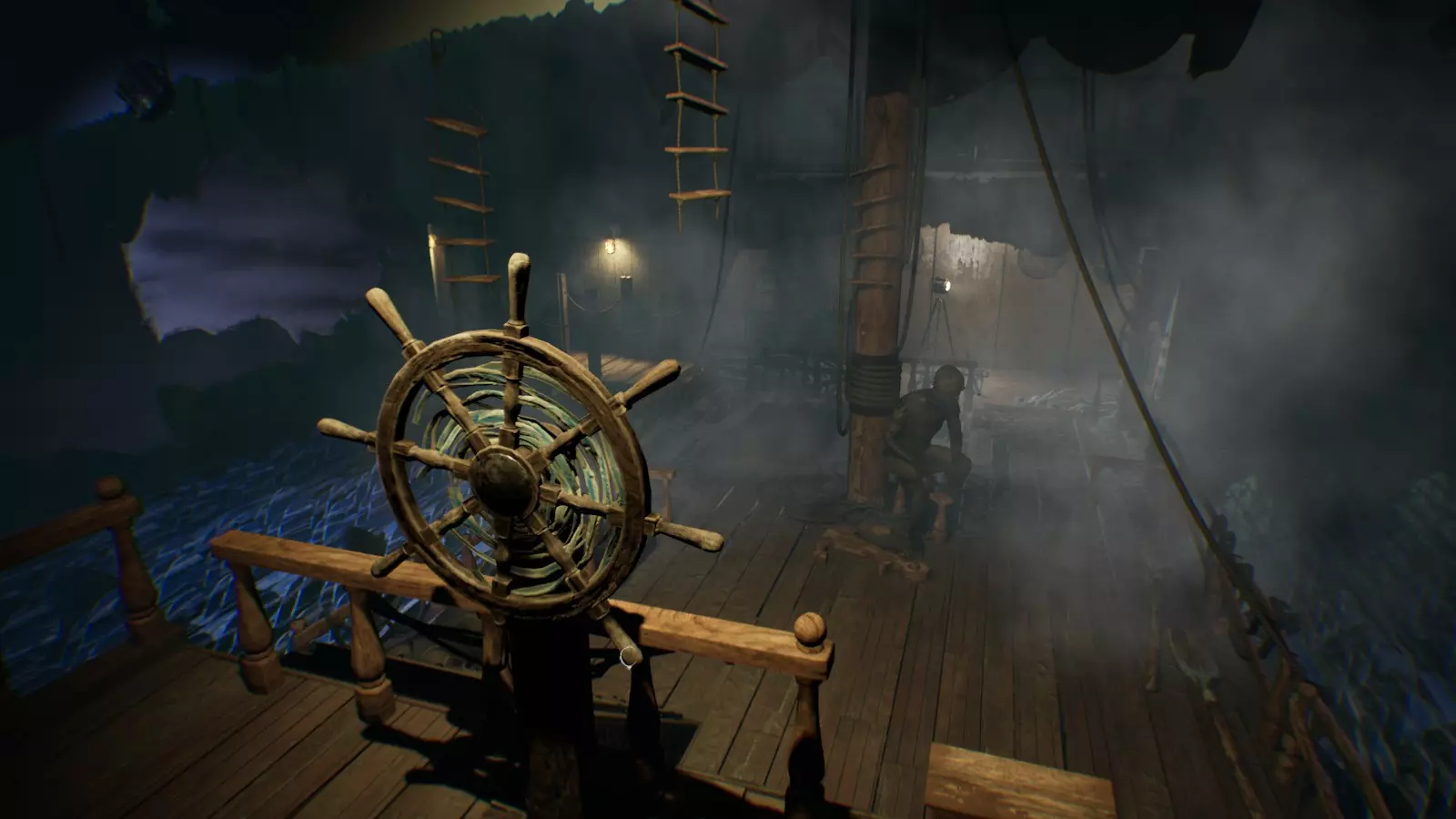 更令人失望的是,谜题本身毫无意义:从剧情角度来看,它们只是多余的存在。没有任何隐喻,没有任何隐藏的意象,也没有对主角命运或心理状态的思考。如果去掉这些谜题,只保留在船上行走的剧情和偶尔的闪回,游戏内容也不会有任何变化。谜题的唯一作用就是让玩家活动一下,避免无聊,但它们连这点都做不到。不过,《层层恐惧2》中最具争议的游戏部分或许是主角不得不躲避怪物或躲避光线的环节。这些场景通常发生在光线昏暗且布满物品的区域,角色经常会被这些物品绊倒。 这些章节本应充满动感,打破游戏缓慢的节奏,让玩家感到紧张不安。但这一切都无济于事——想要一次就通过追逐战,恐怕只能靠运气。《层层恐惧2》整体围绕着探索场景和解谜展开,有时还会直接让玩家做出一些重要选择。总之,核心玩法节奏舒缓,近乎冥想。因此,在这样一款游戏中加入追逐战,失败就会触发死亡画面的设计,显得有些奇怪。让玩家在剧情中“死亡”会更合理,只给一次成功逃离怪物的机会。这样能增加紧张感,也不会破坏从游戏一开始就精心营造的氛围。通常逃离怪物并不太难,但在其中一个追逐片段中,游戏对我来说“崩溃”了:那里需要在几乎漆黑的走廊里奔跑,走廊里有很多门,却只有一个检查点。我不得不把路线背得滚瓜烂熟,但这也没什么太大帮助:由于这里的操作,就连快速开关门都变成了一种折磨。运气好的话,门会立刻打开;运气不好的话,游戏就不会再给第二次尝试的机会。看看加载屏幕吧。