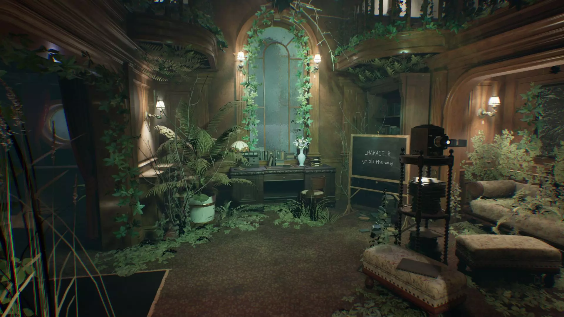 无论如何,到第二章开始时,电影相关的主题似乎只是为了让邮轮的设定不至于那么快让人感到厌倦,而在华丽的装饰背后,却隐藏着整体叙事的缺失。总的来说,在《层层恐惧2》中有许多漂亮且独特的场景,但它们很容易淹没在大量相似的走廊和门之间。尽管游戏场景不断变化,但玩家仍会感觉主角只是在同一个地方兜圈子。因此,游戏的剧情似乎只有开端和最终反转,而中间部分则充斥着重复的日常和零散的叙事。如果将《层层恐惧2》的剧情抽离出来并稍加解读,就能得到一个相当清晰且完整的故事。游戏的核心概念之一便是表演方法。当演员运用体验派表演方法时,会将角色的个性融入自身,通过自己的回忆来塑造:并非简单地模仿他人,而是暂时完全化身为那个角色。玩家的主要任务正是“塑造角色”。显然,神秘的电影导演对主角的期望正是如此。他的声音一直萦绕在演员耳边,并在关键时刻给出行动指示。你可以选择听从导演的指示,也可以选择违抗:正是这一选择会影响剧情走向。