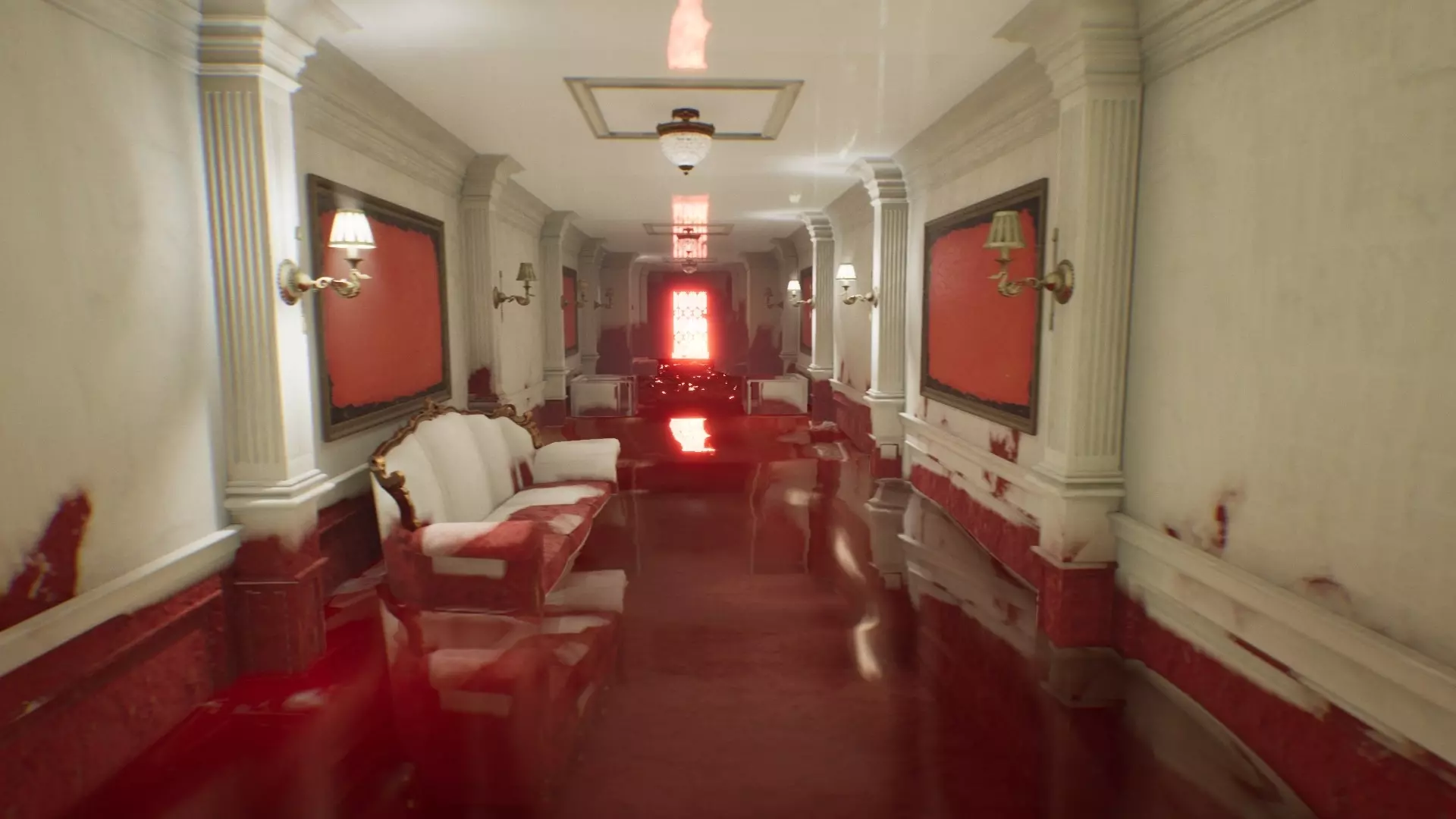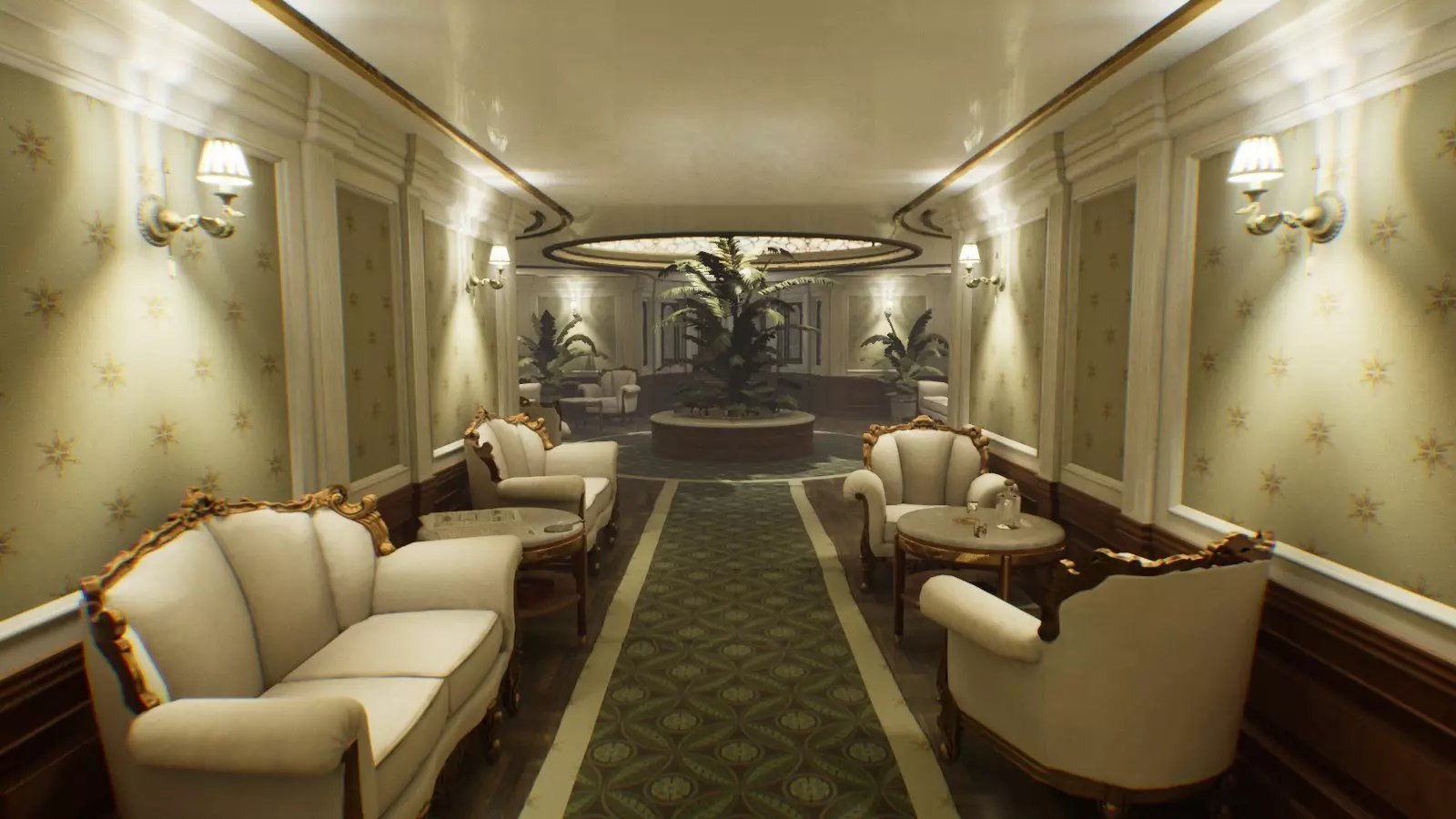 然而,很明显,遵循《层层恐惧》初代已有的模式这一需求,明显限制了开发者的创作潜力。游戏本身并不太恐怖,叙事也显得支离破碎,视觉意象更是混乱地混杂成了某种恐怖大杂烩。《层层恐惧2》未能成为新颖且独特的作品,但似乎它本身也没有这样的目标。它甚至没有尝试跳出类型框架,还不断强行提醒玩家:“你正在玩一款心理恐怖游戏,你应该感到害怕”。最终,在追求遵循所有形式规范并为游戏填充类型常见元素的过程中,《层层恐惧2》失去了叙事的完整性和氛围的神秘感。不过开发者还是有一些做得不错的地方。主角是一位著名的好莱坞演员,他登上了一艘巨大的游轮:一位神秘的导演邀请他来此拍摄。这位导演给主角布置了融入新角色的任务,但演员始终没有拿到任何剧本。 相反,他被独自锁在游轮的某个舱室里,以便他能调整好状态,为拍摄做好准备。在探索邮轮的过程中,玩家会逐步“塑造角色”,而这个角色正是主角即将在新电影中扮演的角色。