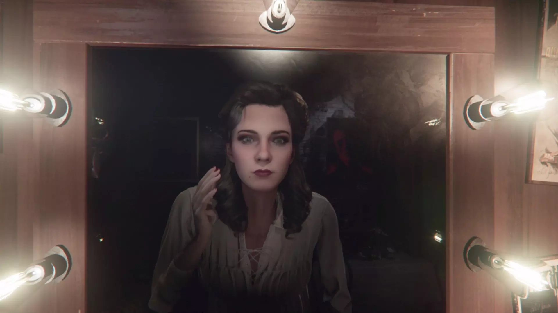 《层层恐惧2》的问题甚至不在于它汇集了各种恐怖俗套,而在于它试图用这些俗套来认真地吓唬玩家。2015年,Supermassive Games工作室就已经制作了一部大型恐怖混搭作品,并在《直到黎明》中带着自嘲的态度呈现出来。《层层恐惧2》并没有尝试解构这一类型,也没有以新的方式展现其常见元素,只是将这些元素一股脑地抛给玩家,希望能从中榨取尽可能多的情绪。而且它不仅是认真地在这么做,甚至带着一种自命不凡的意味。 在此之上,还充斥着大量刻意的流行电影致敬元素。但这些都只是在和玩家玩些小花招,对叙事并没有任何实际帮助。《层层恐惧2》显然将自己定位为一部独立作品,因此如此多的致敬元素反而让人感到困惑:当看到第五处对库布里克《闪灵》的致敬时,你就开始跟不上剧情了。