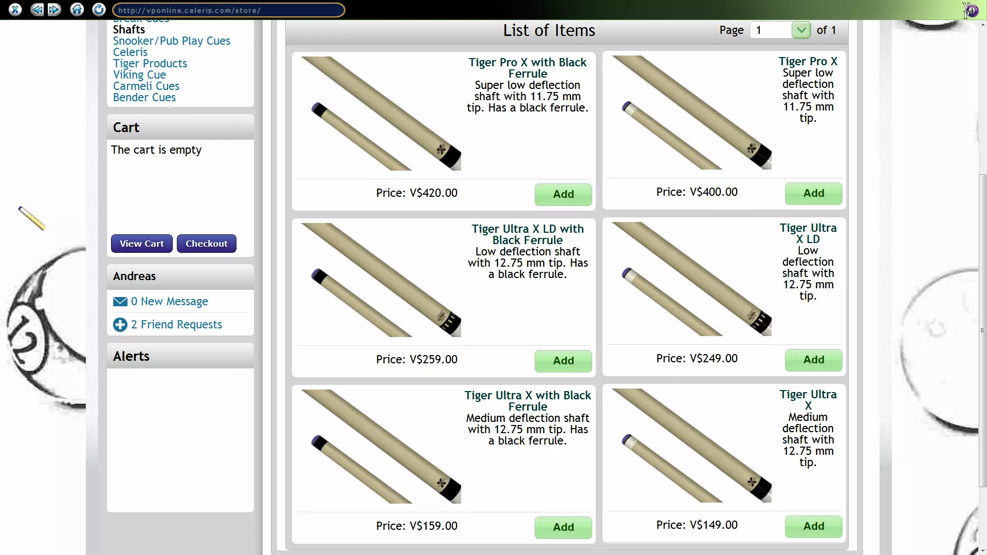标准球杆(公用球杆)并不值得完全推荐,因为它存在明显的缺点:传递给主球的旋转较少,且由于较大的偏移,侧旋需要更多的补偿;无法用力击打主球:这在大多数情况下是个小缺点,但在开球时却是巨大的劣势;球杆在偏离主球中心较近的位置就容易滑杆。 不过,也有一些玩家使用公用球杆能打出出色的表现。所以不必勉强购买新球杆。熟悉《虚拟台球4》的顶尖玩家使用公用球杆也能表现得很好。 实际上,购买顶级球杆并不能保证你获得成功,但确实能让打球变得稍微容易一些。标准球杆(默认球杆)仅在一定程度上值得推荐,它有明显的缺点:传递给母球的旋转效果较弱,左右旋转需要更多的调整补偿。 不过,也有玩家使用默认球杆表现出色。并非必须购买新球杆。熟悉虚拟台球系列的顶尖玩家使用默认球杆也能应对。 即使购买顶级球杆,也不能保证你能赢得更多比赛,但会让游戏体验稍微轻松一些。 球杆指南 虚拟球杆(台球) 偏转度越低,球杆越好。如果虎牌球杆的偏转度低于当前球杆,你可以通过购买虎牌球杆来进一步降低偏转度。V币 300 斯诺克/酒吧台球球杆 酒吧之圈是最好的斯诺克/酒吧台球球杆,但也是最贵的。 酒吧之圈.......0.86 偏移度.....8毫米杆头.... V币 650 苍蝇拍..........0.95 偏移度.....9毫米杆头.... V币 450 现代酒吧........1.00 偏移度.....8毫米杆头.... V币 300高偏转球杆,例如Scotty C02,搭配Tiger Pro X杆身的效果,与低偏转球杆Tiger TC-8搭配Tiger Pro X杆身的效果相当。 如果购买任何Tiger球杆,若想进一步降低偏转,只能选择购买Tiger Ultra X LD杆身或Tiger Pro X杆身。Tiger球杆通常标配Tiger Ultra X杆身。 偏转程度越低,球杆性能越好。若要进一步降低偏转,可购买Tiger杆身,但前提是该Tiger杆身的偏转程度低于原球杆。 高偏转球杆(如Scotty C02)搭配Tiger Pro X杆身的效果,与低偏转球杆Tiger TC-8搭配Tiger Pro X杆身的效果完全相同。如果你购买了任何一款老虎球杆,那么只有再购买老虎Ultra X低偏转杆身或老虎Pro X杆身,才能降低偏斜度。老虎球杆标配的是老虎Ultra X杆身。 卡迈利专业款.......................偏斜度1.82......杆头13毫米..........虚拟币7000 白三叶草........................偏斜度1.82......杆头13毫米..........虚拟币4100 POV-MIA..............................偏斜度1.82......杆头13毫米..........虚拟币3000 高个史蒂夫...........................偏斜度1.82......杆头13毫米..........虚拟币3000 卡迈利点纹款......................偏斜度1.82......杆头13毫米..........虚拟币2500 赛勒瑞斯LTD01......................偏斜度1.82......杆头13毫米..........虚拟币2200 兹维尔原版...................1.82 偏移量......13毫米杆头.......... 虚拟币 2200 嘀嗒..............................1.82 偏移量......13毫米杆头.......... 虚拟币 1500 大教堂........................1.82 偏移量......13毫米杆头.......... 虚拟币 1400 经典圆点..........................1.82 偏移量......13毫米杆头.......... 虚拟币 1350 Celeris LTD05........................1.82 偏移量......13毫米杆头.......... 虚拟币 1250 卡迈利橄榄木.........................1.82 偏移量......13毫米杆头......... 虚拟币 1200 锯齿多点................ 1.82 偏移量......13毫米杆头.......... 虚拟币 1100 自然格纹.............1.82 偏移量......13毫米杆头...........虚拟币 900 波浪石.........................1.82 偏移量......13毫米杆头.......... 虚拟币 850 Celeris P459 ..........................1.82 偏移量13毫米杆头.......... 虚拟币 830 维京 SE-102 ........................1.82 偏移度......13毫米杆头.......... 虚拟币 750 维京 SE-101 ........................1.82 偏移度......13毫米杆头.......... 虚拟币 750 老虎经典系列(TC-8)....1.64 偏移度......12.75毫米杆头......虚拟币 679 老虎经典系列(TC-6)....1.64 偏移度......12.75毫米杆头......虚拟币 679 老虎经典系列(TC-5)....1.64 偏移度......12.75毫米杆头......虚拟币 649 老虎经典系列(TC-7)....1.64 偏移度......12.75毫米杆头......虚拟币 649 斯科蒂 C02..............................2.05 偏移度......13毫米杆头.......... 虚拟币 610 维京 SE-105.........................1.82 偏移度......13毫米杆头.......... 虚拟币 550 老虎经典系列(TC-2)....1.64 偏移度......12.75毫米杆头......虚拟币 529 老虎经典系列(TC-4)....1.64 偏移量......12.75毫米杆头......虚拟币 529 Celeris R&B............................1.82 偏移量......13毫米杆头...........虚拟币 500 Tiger Classic Series (TC-1)....1.64 偏移量......12.75毫米杆头......虚拟币 499 Tiger Classic Series (TC-3)....1.64 偏移量......12.75毫米杆头......虚拟币 499 Celeris P448...........................1.82 偏移量......13毫米杆头...........虚拟币 480 Scotty C01..............................2.05 偏移量......13毫米杆头...........虚拟币 465 Viking SE-104.........................1.82 偏移量......13毫米杆头...........虚拟币 450 Celeris P446...........................1.82 偏移量......13毫米杆头...........虚拟币 420 Carmeli Classic.......................1.82 偏移量......13毫米杆头...........虚拟币 390 Viking SE-103.........................1.82 偏移量......13毫米杆头V$ 300 球杆杆身(台球) 这里我推荐购买超低碳钢杆身(Tiger Pro X)。这款杆身的突出特点是,在施加侧旋时你需要的补偿更少;此外,它能让主球在加塞(上旋和下旋)时产生更明显的效果。公杆无法与杆身组合使用。 带黑色金属箍的Tiger Pro X................1.20 偏斜度....11.75毫米杆头..... V$ 420 带白色金属箍的Tiger Pro X1.20 偏移量....11.75毫米杆头...