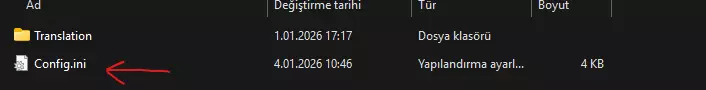 打开文件夹,您会看到Config.ini文件。用记事本应用程序打开该文件。