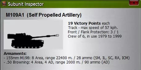 1个炮兵团(英国炮兵团实际上是营级规模,沿用了过去的“团”这一术语)。遗憾的是,这些部队将作为援军登场,但3个满编炮兵连的M109A1自行榴弹炮一旦出现,除了烟雾弹和高爆弹外,还将使用改进型常规弹药和地雷,其存在感不容小觑。