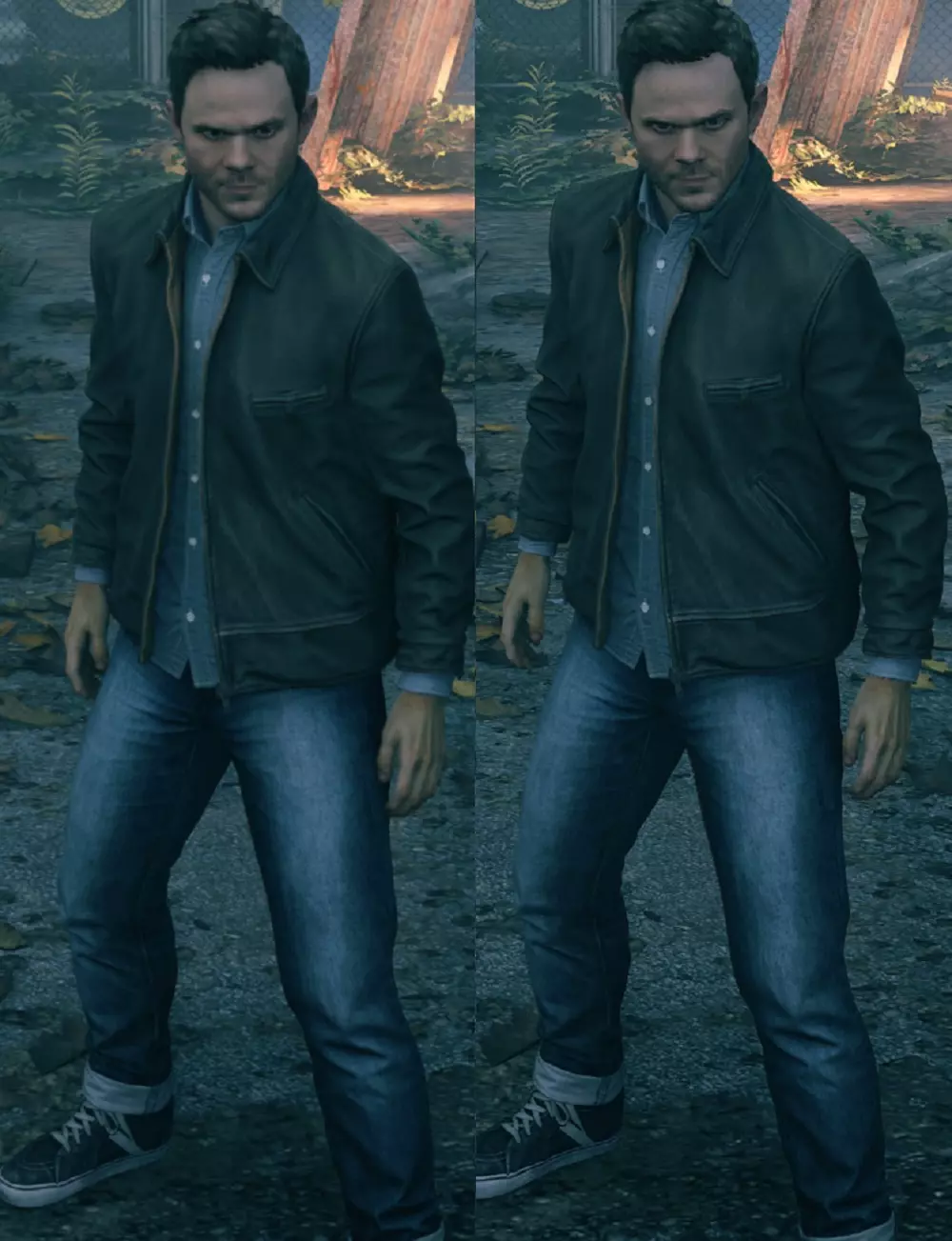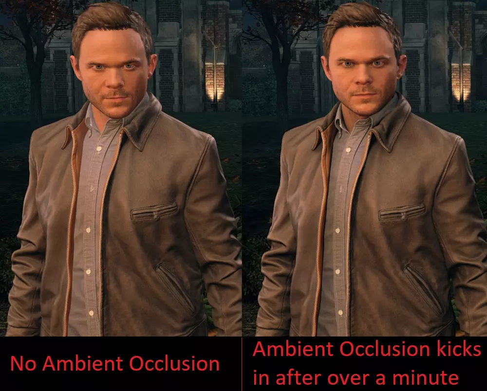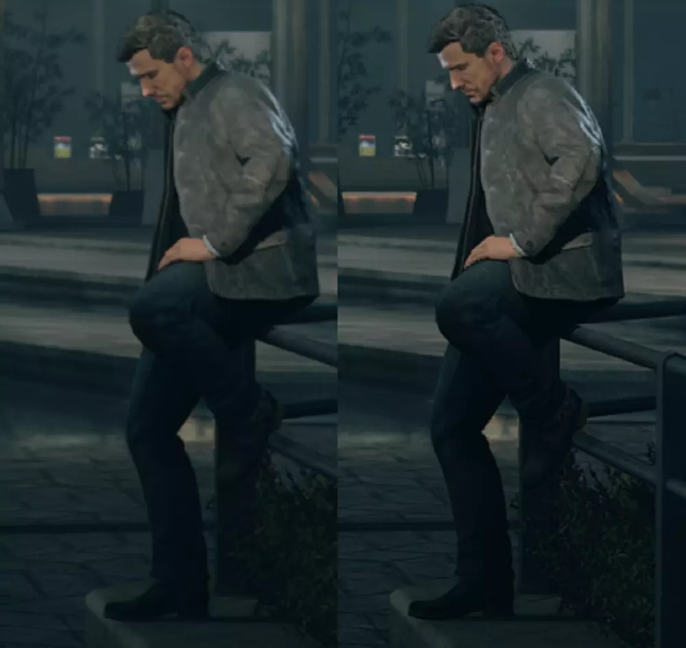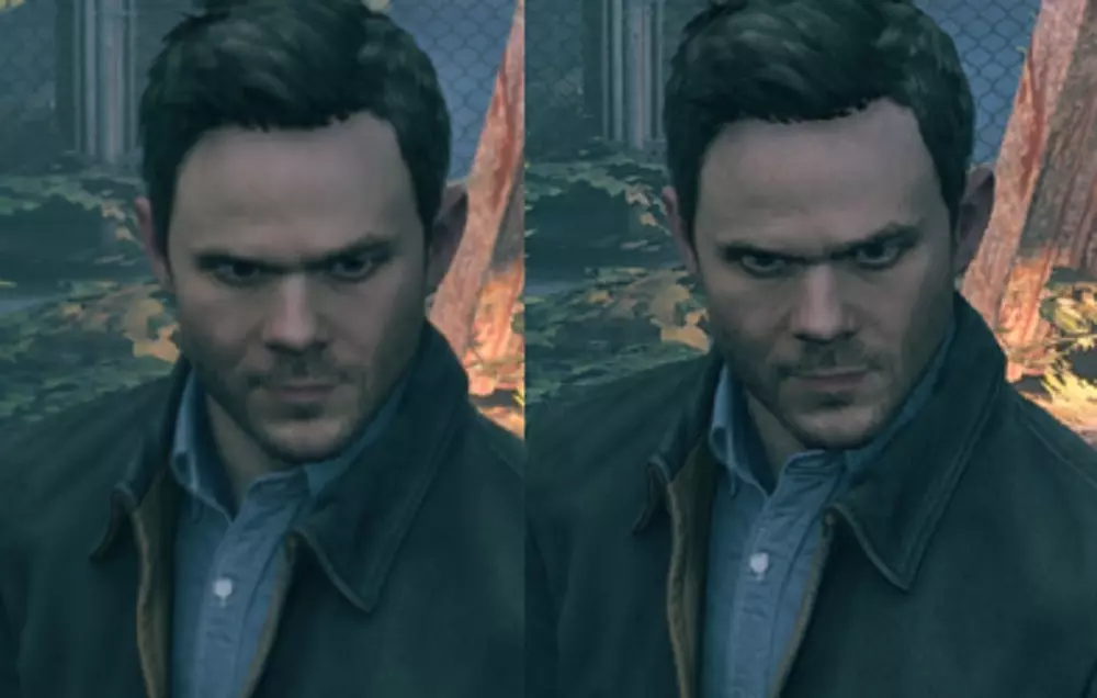 对我来说,在我游玩时的设置下(帧率在48到60 FPS之间波动),【自适应垂直同步】和【低延迟垂直同步】的组合完全解决了这个问题。但当我把游戏特效完全拉满,导致帧率在某些情况下低至42 FPS时,这些锁定问题仍可能出现。因此,理想情况下,你应该将游戏配置为帧率下降幅度不超过最大刷新率的20%。一些补充说明: 过场动画被锁定为30 FPS,并且从过场动画切换回游戏后,这个30 FPS锁定需要几秒钟才能解除。 如果你遇到了30 FPS锁定,并且已按照上述步骤操作,那么进入并退出菜单(快速按两次ESC键)应该能让游戏恢复到60 FPS(别问为什么,去问开发商吧)。 锁定帧率为刷新率的一半,所以不一定是30 FPS。如果你的刷新率是100 Hz,那么锁定帧率可能会是50 FPS。 更新: 你也可以使用NVIDIA的快速同步(Fast Sync),相比其刚推出时,现在的效果要好得多,也不像以前那样卡顿了。它尝试让游戏像开启垂直同步(V-sync)时一样流畅且无撕裂,但实际上不使用任何同步方式,因此不会增加太多延迟。对于像《量子破碎》这类采用恶意双缓冲垂直同步的游戏而言,最重要的是,它不会被游戏检测为垂直同步,所以游戏无法再锁定到刷新率的一半,其表现就像关闭了垂直同步,不会对帧率输出造成任何干扰。 模糊的画面表现 加载进入游戏后,我注意到的第一件事是,尽管游戏以正确的原生分辨率渲染且未启用 upscale 选项,但画面看起来极其模糊。 幸运的是,解决模糊问题和其他游戏一样简单,只需使用 Reshade,特别是其中的 LumaSharpen 设置。我几乎在所有游戏中都使用它来弥补时间抗锯齿技术通常带来的模糊问题。此外,我还使用了去色带选项来减少色带现象(同样适用于所有游戏),并通过色调映射功能比游戏内滑块更精确地调整伽马值。 《量子破碎》中的模糊程度尤其严重,因此需要比平时更多的锐化处理。以下是一些前后对比效果。
