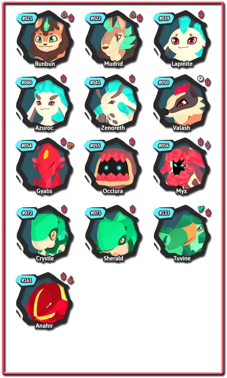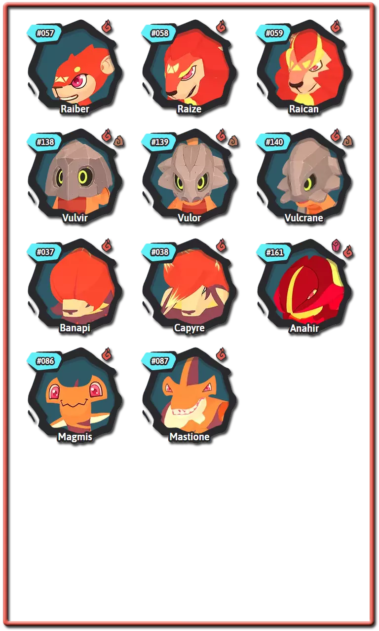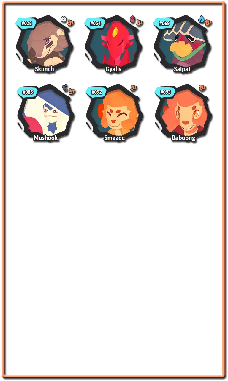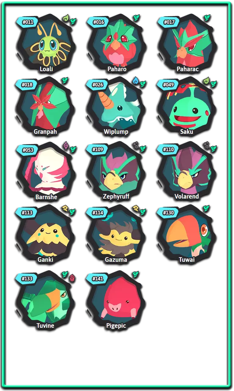 腾兽拥有名为【特性】的特征,该特征会以某种方式影响它们的战斗。大多数腾兽可以拥有两种不同特性中的一种,而有些腾兽则只有一种。这些特性只能是正面或负面的,并且通常在腾兽出生时随机选择。进化时,许多腾兽会获得一组新的特性。进化后腾兽的特性将与未进化腾兽的特性在腾兽图鉴中处于相同的位置。 通常情况下,通过繁殖出生的腾兽的特性是随机选择的,但某些装备道具可以强制父母将其特性传递给后代。 以下是腾兽中使用的所有特性及其拥有者: 复仇者:当一名队友倒下时,特攻和速度提升1级。风行者:使用风系技能时,伤害提升15%。拥有者:萨克、巴恩谢、泽菲拉夫 两栖:受到水系技能攻击时,速度提升1个等级。拥有者:福姆、赛帕特、克里斯特尔、鸭嘴兽、比古 厌氧:使用剧毒技能攻击时,自身特防提升,特攻下降。拥有者:沃拉伦德 药师:使用特殊技能攻击时,若目标为对手则使其进入1回合中毒状态;若目标为队友则使其进入1回合再生状态。拥有者:奥菲伊尔 恩赐者:当队友受到伤害时,自身最大生命值恢复10%。拥有者:基努 植物学家:使用自然系技能时,额外增加15%伤害。拥有者:洛阿里、希多迪、萨克、斯普里奥 植物恐惧:受到自然系技能攻击后,伤害提升50%。拥有者:甘奇、卡拉比斯 强壮:受到物理技能攻击时,额外承受20%伤害。斯肯奇、巴布翁 【恃强凌弱】当我方腾兽数量多于对手时,造成的伤害提升30%。 格兰帕、斯肯奇、马斯蒂欧尼、布鲁兹 【提神醒脑】免疫睡眠状态。 帕哈拉、卡库、玛格米斯、乌米希、沃尔维尔、邦邦 【厚皮】受到物理技能攻击后,防御提升1级。 瑟尼夫 【同袍之谊】若伙伴腾兽与自身为同一进化链,则受到攻击时减免50%伤害。 帕哈拉、雷拜尔、斯普里奥、沃尔维尔 【聚能】特殊技能造成的伤害提升25%。 泽诺雷斯 【寒性体质】陷入寒冷状态时,改为进入冰冻状态。 甘奇 【威慑】登场时,降低对手全队速度1级。 雷泽 【坚毅】免疫负面能力等级变化。普拉蒂姆斯、瓦拉什、图维因 电力合成:受到电系技能攻击时,不会减免所受伤害,而是恢复生命值。 希多迪、尼斯啦、拉皮尼泰 能量储备:当回合结束时生命值低于25%,则获得2回合的活力提升效果。 食人鱼腾兽 昏厥诅咒:被击倒时,攻击者的最大生命值降低40%。 皮格皮克、阿祖洛克 快速充能:当有数码系队友登场时,自身速度提升2倍。 加祖马 狂热突袭:陷入异常状态时,攻击提升1级。 斯玛zee 缺陷水晶:受到精神系、毒系或电系技能攻击时,造成的伤害增加50%。 阿纳希尔 友谊:对队友的攻击技能免疫。 帕哈罗、皮格皮克、斯玛zee 狂怒:当生命值低于33%时,技能造成的伤害增加33%。雷兹、斯凯尔 守护:阻止队友陷入冰冻、烧伤、中毒和厄运状态。 修因 悬浮:受到土系技能攻击后,所受伤害降低50%。 帕哈罗 水文专家:水系技能伤害提升15%。 福姆、皮乌基、乌卡玛、奥希拉、奈斯拉、卡拉祖 免疫:承受毒系技能造成的伤害。 修因 独行:使针对队友的技能失效。 武洛 最后冲刺:作为最后一只存活的队友腾兽时,攻击、特攻和速度提升50%至最大值。 格兰帕、卡皮尔、斯帕奇 孤僻:双方队友的协同效果均无法生效。 卡拉比斯 精神联盟:若队友为精神系,自身特攻提升15%。 胡奇克 镜像:受到特殊技能攻击时,攻击者受到20%的伤害反弹。谢洛德、霍卡斯、阿祖洛克、盖亚利斯 【抗毒体质】:防止陷入中毒状态。 斯瓦利、卡库、迪恩德雷、奥希拉、卡拉祖 【激励者】:回合开始时,队友恢复10%的耐力值。 雷坎 【粘液】:抵抗电系技能伤害,并阻止陷入寒冷和灼伤状态。 巴巴瓦 【中立】:防止所有异常状态。 巴恩谢 【格挡】:受到物理技能的伤害降低30%。 穆胡克 【耐心】:使用蓄力技能时,恢复10%的最大耐力值。 维普伦普、食人鱼腾兽 【饱满】:当生命值满时,腾兽获得额外30%的速度。威普伦、乌卡玛 瞌睡恢复:在回合开始时,为处于睡眠状态的腾兽恢复15%的最大生命值。 托克洛特尔 高傲:若攻击期间目标被击倒,则自身的攻击、特殊攻击和速度提升。 雷坎 守护者:当自身进入战场时,队友的防御和特殊防御提升。 奇努 谨慎:受到火、土或近战技能攻击时,特殊防御提升10级。 谢拉德 肉盾:受到的近战技能伤害降低30%。 古尔德 傀儡大师:当自身生命值降至40%或以下时,对手的技能会被重定向至队友。 米克斯 纵火狂:使用火属性技能时,伤害增加15%。 巴纳皮、沃勒、马斯蒂恩 易感:获得有利状态时,该状态持续回合增加1。穆德里德、加祖马、图维恩、沃尔克兰 活力恢复:使用物理技能攻击时,恢复最大生命值的15%。 米克斯 坚韧:防止因力竭而被击倒。 塔特鲁、泰夫、卡皮尔、图瓦伊、普拉托克斯、邦邦、穆希 抗性:受到负面状态时,持续回合减少1回合。 普拉托克斯、穆德里德、贾利斯、穆希 蓄势待发:在战斗的前两回合,该腾兽处于战场时,攻击和特殊攻击提升30%。 莱伯、皮乌基、克里斯特尔 拾荒者:当其他腾兽被击倒时,恢复自身15%的最大生命值。 斯凯尔、拉皮尼特、瓦拉什、奥克卢拉 适应:该腾兽每在战场停留1回合,攻击提升8%。 巴纳皮、迪恩德雷、瑟尼夫 分担痛苦:当在同一回合连续受到攻击时,技能会被重定向到盟友身上。斯瓦利,乌米希 轻柔触碰:目标处于睡眠状态时,受到攻击也不会醒来。 塔特鲁,胡奇克 扫兴鬼:使用多目标技能时,伤害额外增加25%