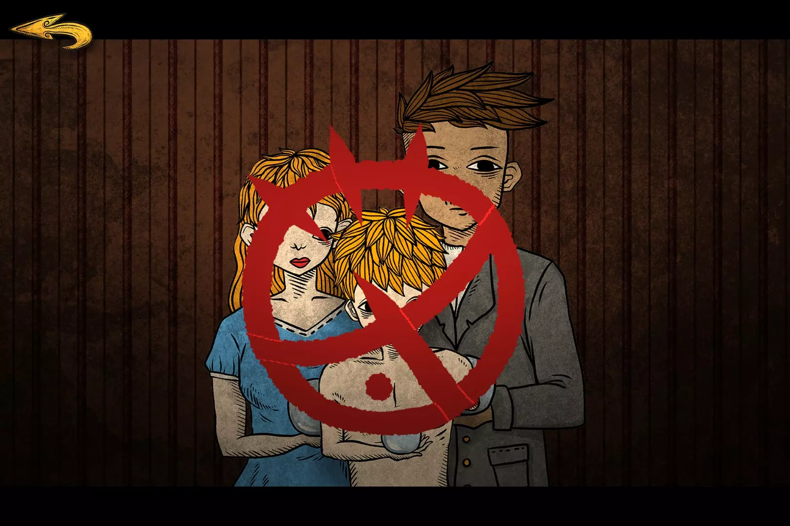摸索 四张照片人物的后面有黑线,将黑线按照弯曲方向对准背景墙上的黑线。 (可以看到爸妈和弟弟在右边的圆上,哥哥孤零零在左边一个人。)