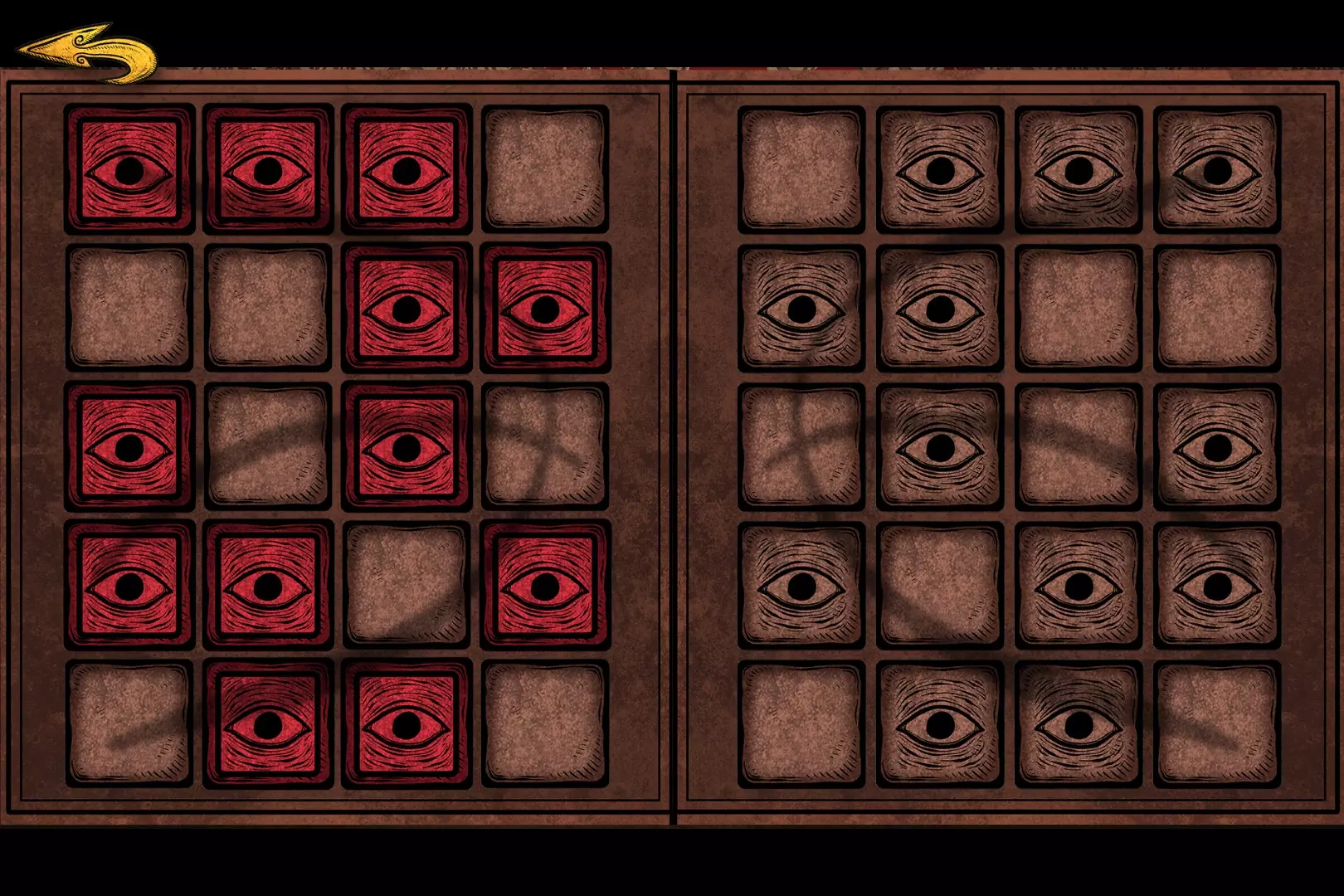 鱼眼珠 翻开相同颜色的眼珠,最后点击闭上的眼睛。