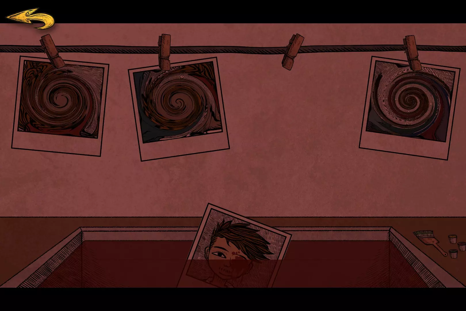 暗房 墙上的4张照片分别拖进底下的水里涮洗。