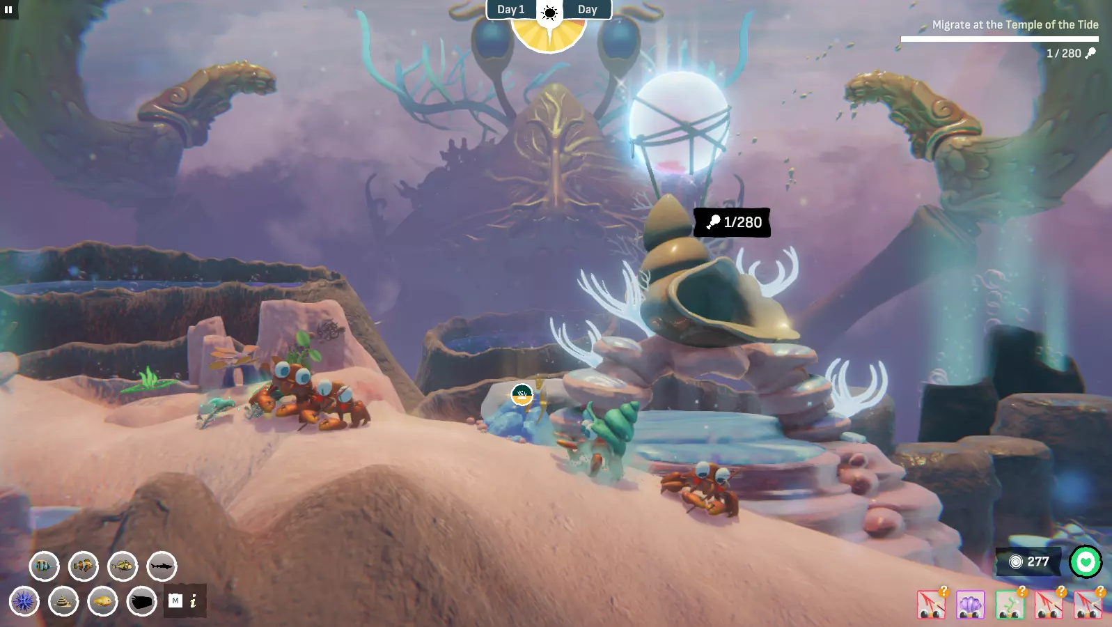 《Crab God》食物收集方法指南 1. 种植植物吸引新物种 水生生物会被你在各个关卡中种植的各种植物和珊瑚所吸引。 实际上,生态系统中的鱼类和其他动物会食用你培育的植物或环境中的其他生物,产生可供收集并带回神庙的食物残渣。鱼类是“邋遢”的食客,这对你的拾荒蟹来说可是个好消息!