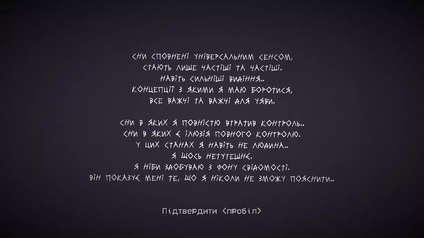 《This Strange Realm Of Mine》乌克兰语安装指南(含对话及纹理翻译) 参与翻译人员 Lacki23 - 翻译 Portalboy - 代码处理 Petrakovskyi - 纹理处理 翻译展示