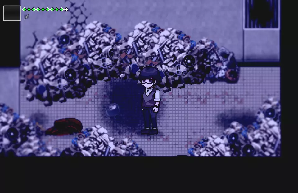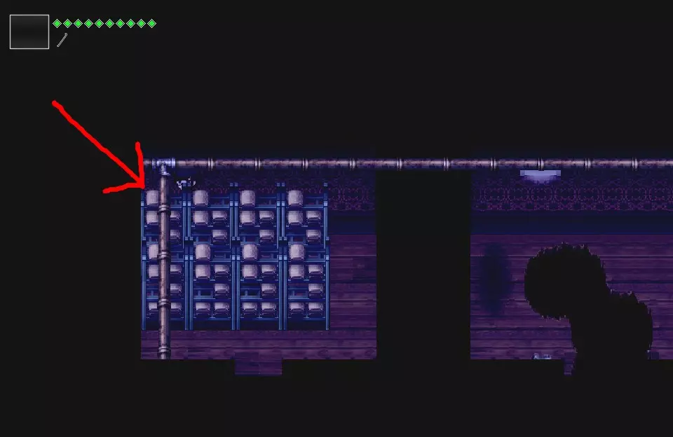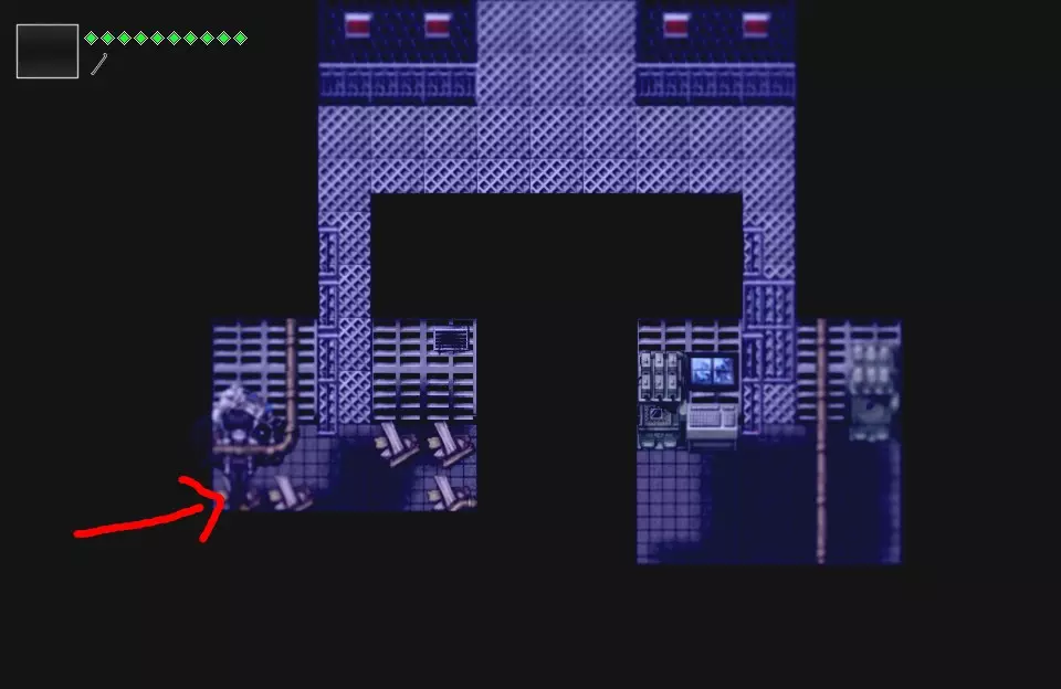 但你需要向右走,而不是向下。 【特别注意!】左右两侧各有一个打开的门。当你穿过其中一扇门时,另一扇门会自动关闭且无法重新打开。如果你想获取制作【管道】的材料,请确保向右走。据我所知,另一扇门内只有治疗物品。