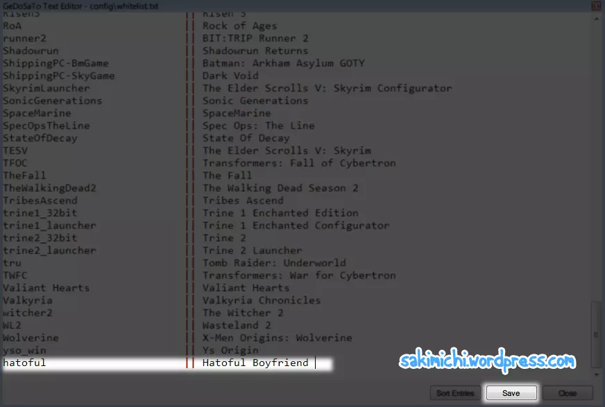 安装步骤 1.下载并安装.NET Framework 4.5和Visual Studio 2013可再发行组件包。 2.然后安装Gedosato,文件名应为GeDoSaToUpdater.exe。运行该程序,并确保将其安装在C盘的GeDoSaTo文件夹中。 3.安装完成后,Gedasto应能运行。如果不能,请前往C: GeDoSaTo文件夹,双击“GeDoSaToTool.exe”。 4.在“白名单”中添加【 Hatoful Boyfriend】。