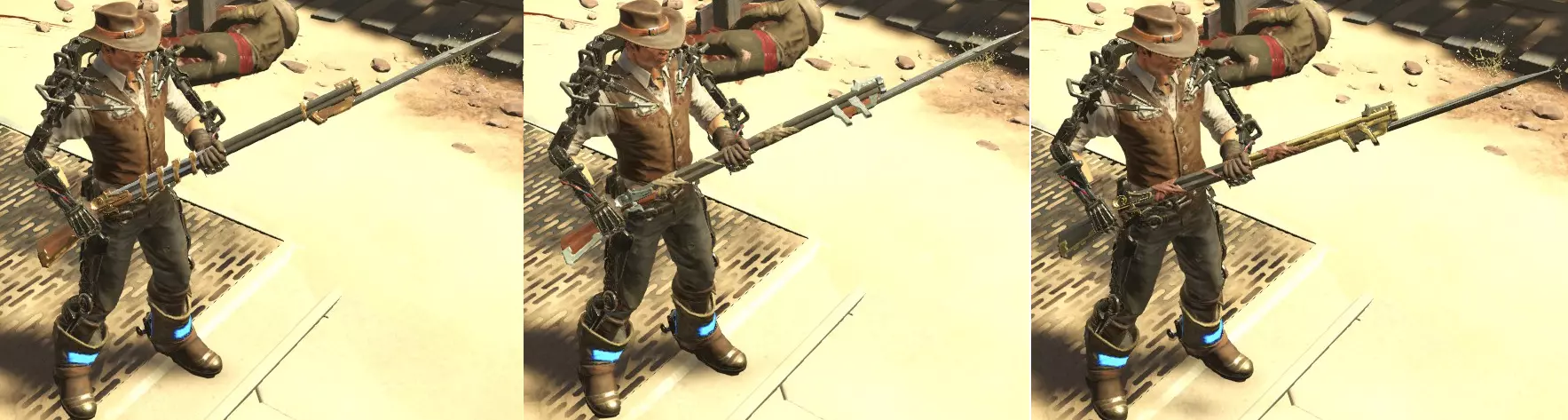 收集所有边境武器 DLC中每种武器类型有3个版本,可通过完成特定的修改器挑战,或从Boss及普通敌人身上肢解获取。每个Boss会携带特定类型的武器,但装备是随机的。增加挑战数量并提高V2概率,可提升Boss装备更高稀有度武器版本的几率。除此之外,获取过程随机性较大,需要反复刷取,尤其是当你希望Boss携带特定武器类型,而它却不按你的想法来的时候。利用每张地图的捷径可更快到达Boss处。 法杖 20XX型步兵步枪 - 图腾狼Boss 30XX型步兵步枪 - 图腾狼Boss 黄金步兵步枪 - 乳糖耐受挑战修改器