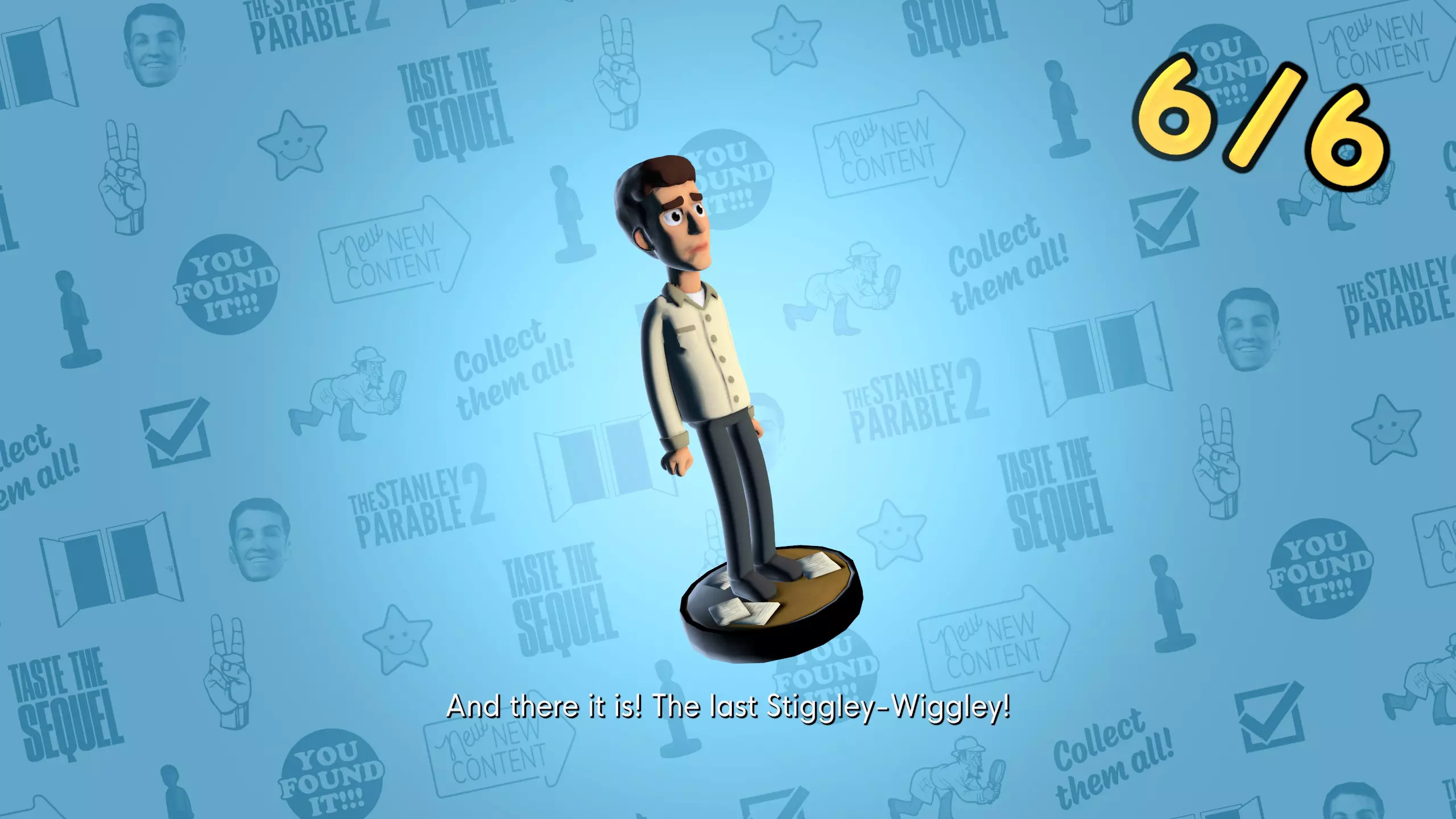 到达【史丹利的寓言2】展区后,你可以收集剩下的五个迷你史丹利。 六个迷你史丹利的位置: 一:【史丹利的寓言2】展区,收藏品房间。 二:跟随剧情来到老板房间的楼梯处,旁白会让你上楼,下楼后,在楼梯底部的后面。