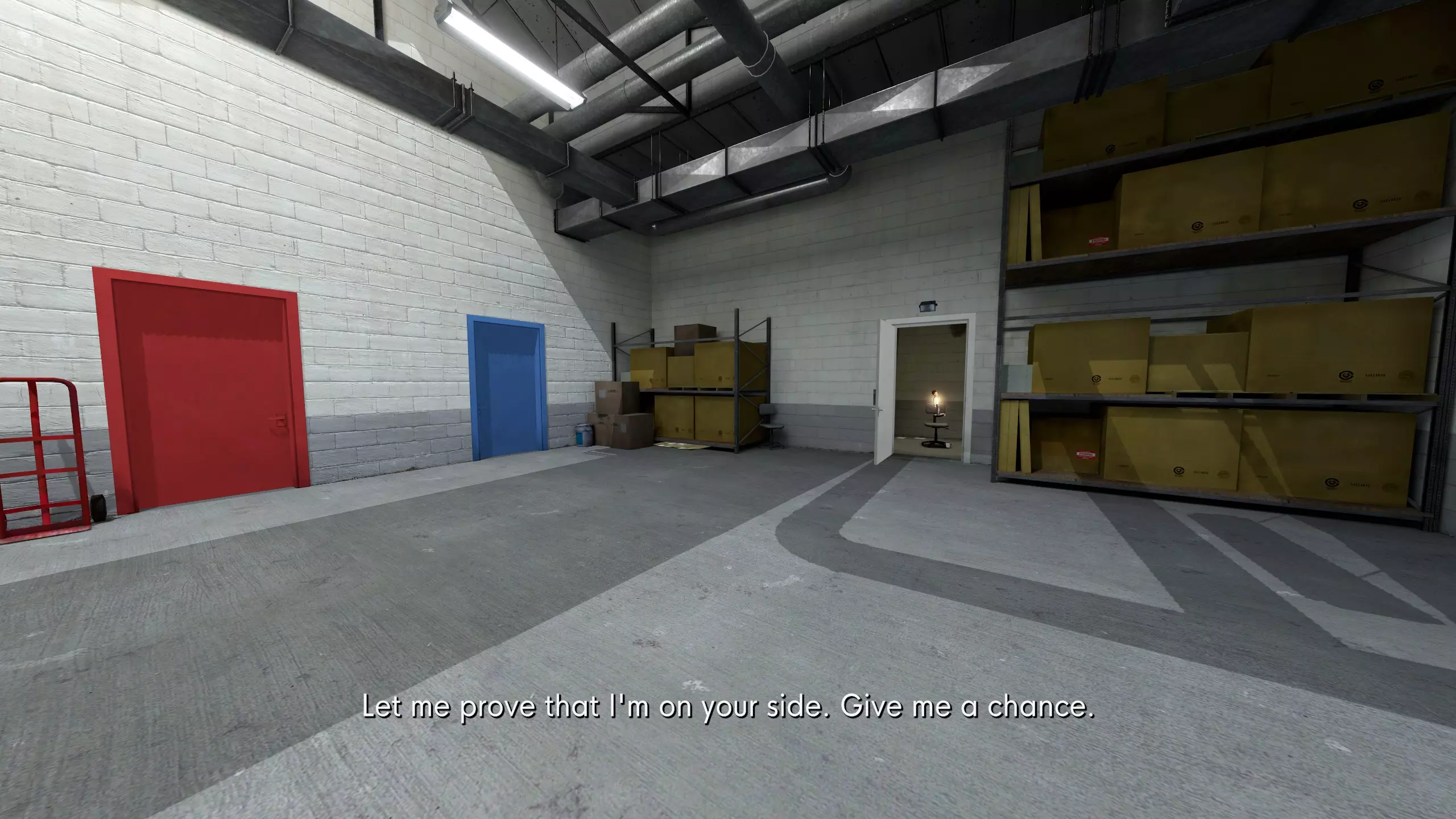 步骤六:在货舱内乘坐电梯后,从电梯跳到下方的通道,然后走向红蓝门房间。它就在你的右手边。
