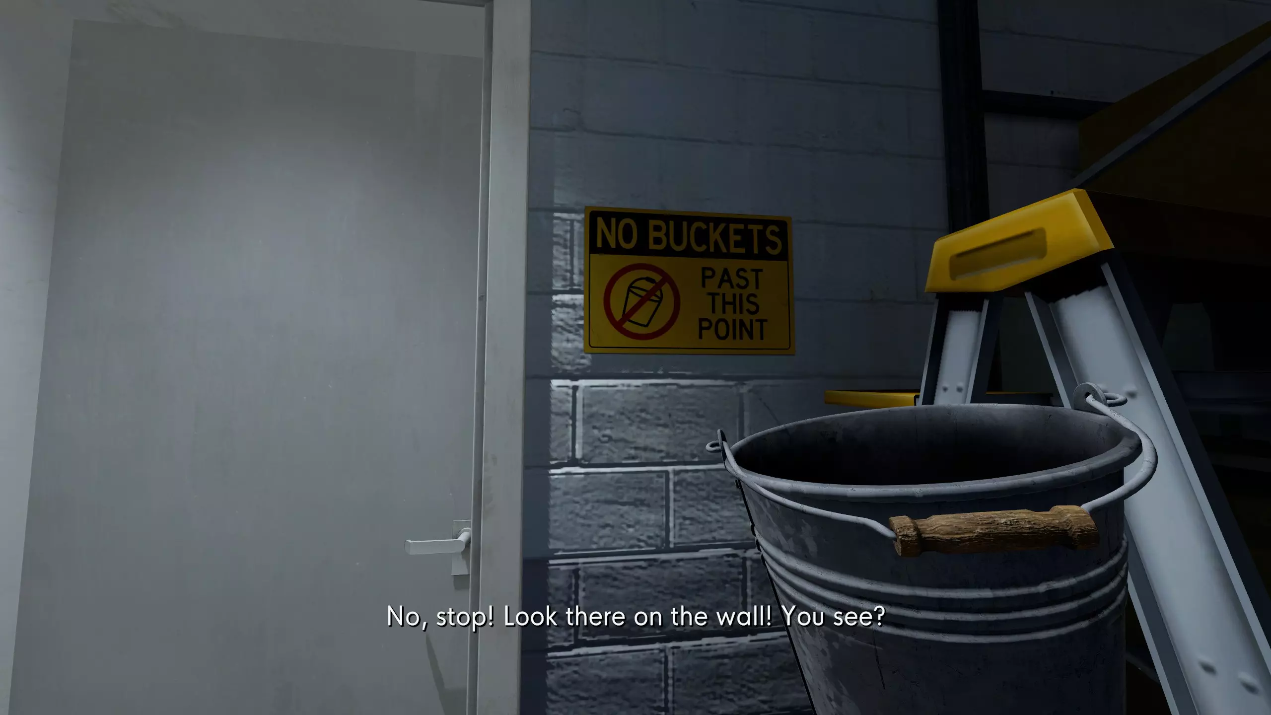 你戴着桶的时候无法获得这个,因为牌子上写着这里是【禁止带桶区域】。 :)