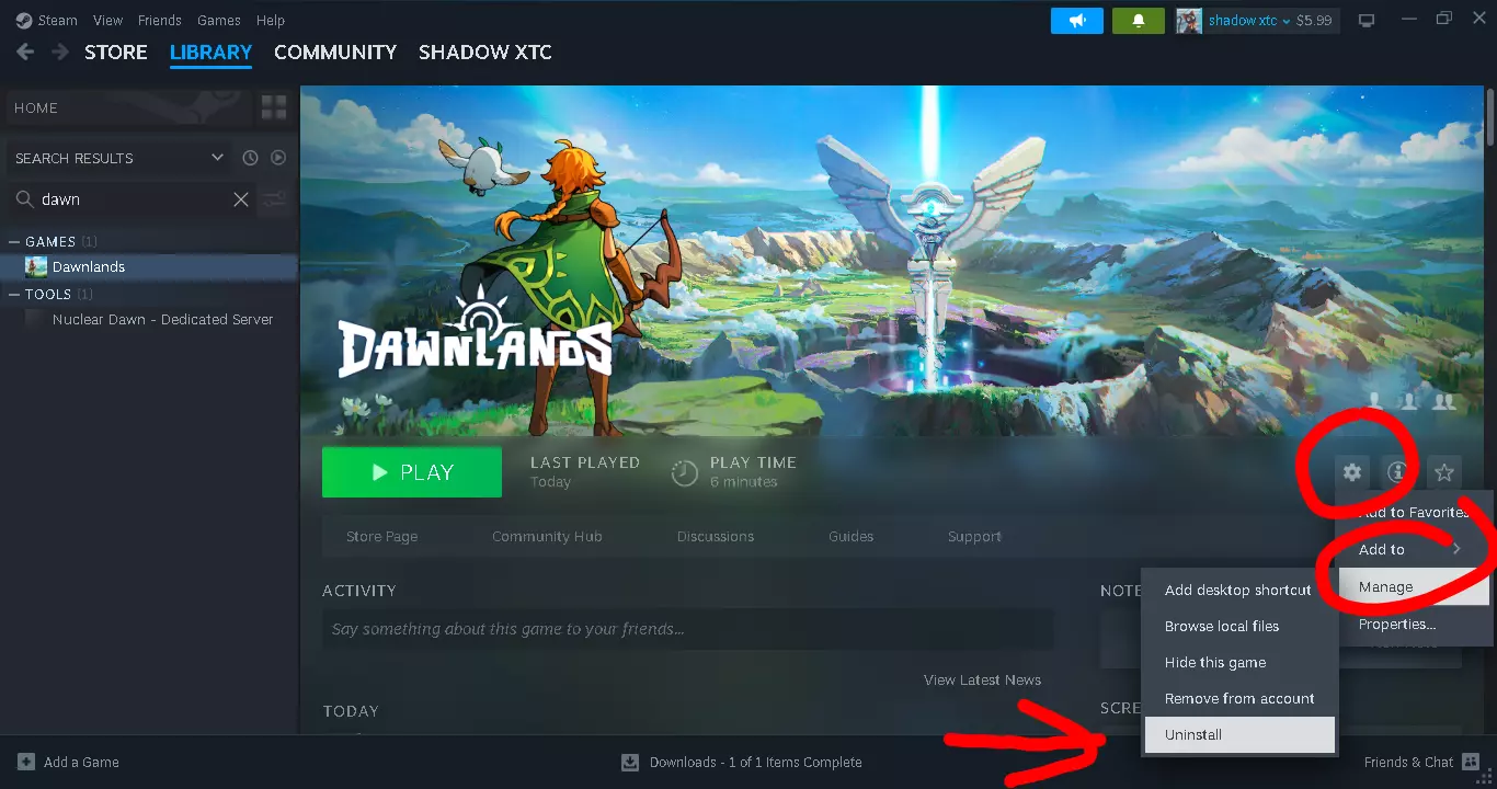 步骤3:在你的游戏库中找到并右键点击想要卸载的游戏,这会打开一个下拉菜单。从该菜单中,选择【管理】,随后会出现一个新的下拉菜单。在这个新菜单中,点击【卸载】。