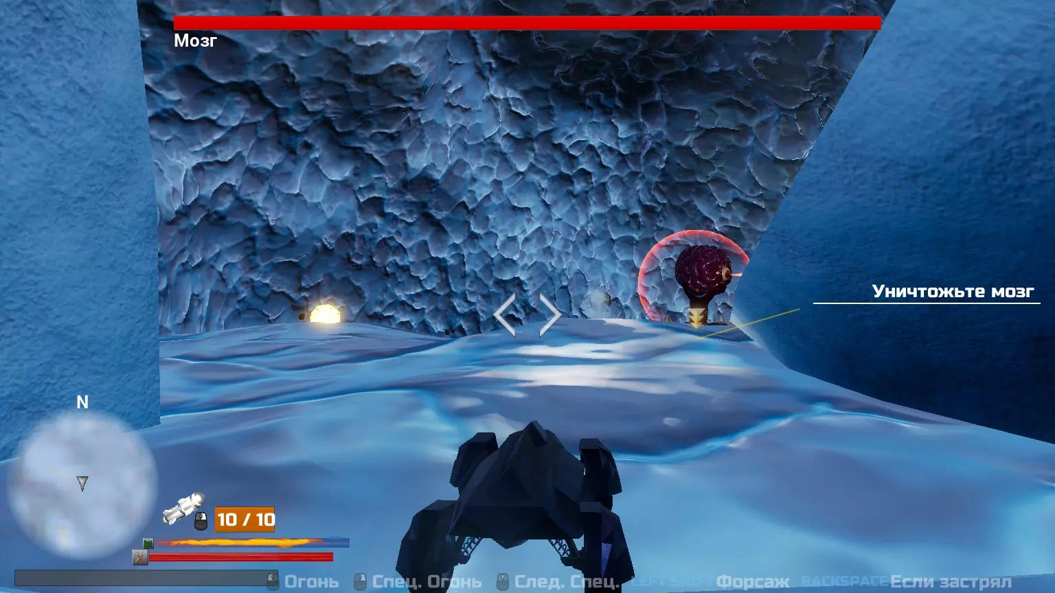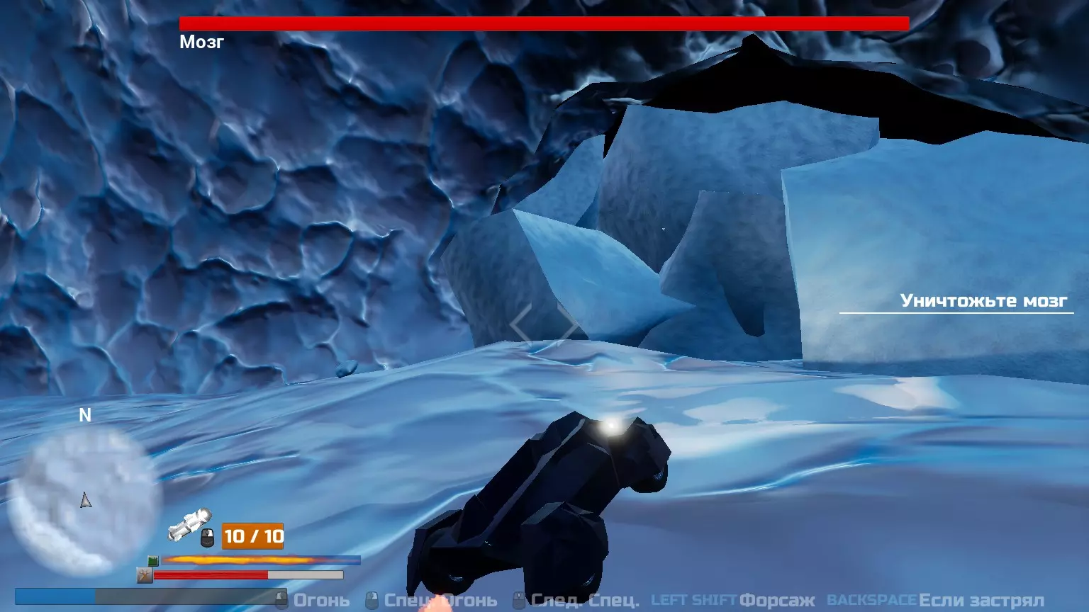 无伤摧毁大脑 将你的车倒车停进那个洞穴,你将在这里完全免受所有攻击。你可以发射火箭,然后摧毁眼睛和大脑。每个阶段需要6-7枚火箭。等待所有火箭恢复后再尝试发射。如果你的火箭数量较少,先摧毁除一只眼睛外的所有眼睛,等待火箭包恢复后再摧毁最后一只眼睛和大脑。火箭并非总能瞄准特定的眼睛;你可能需要微调汽车的精准度以获得更好的位置。