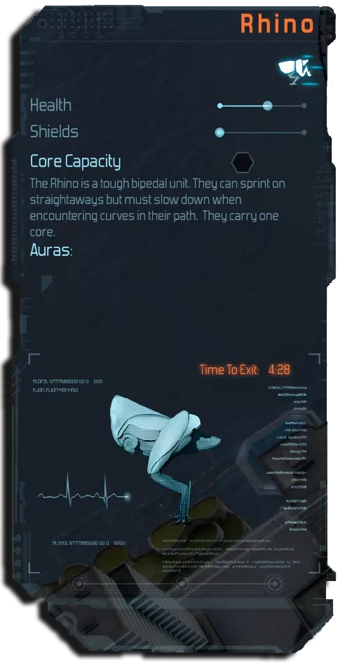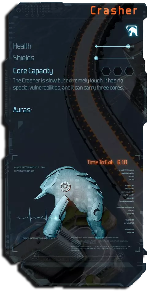 速度=中高(核心容量=1) 生命值=中 备注:能够沿路径直线部分快速移动,可能会让你措手不及! 建造单向长度不超过2-3格的蜿蜒路径可避免此情况。 激光塔和加农炮是不错的选择。 速度=高(核心容量=1) 生命值=低 备注:地狱火塔搭配时间塔是很好的组合。 激光塔也相当有效,因为它们同样是基于热能的塔。