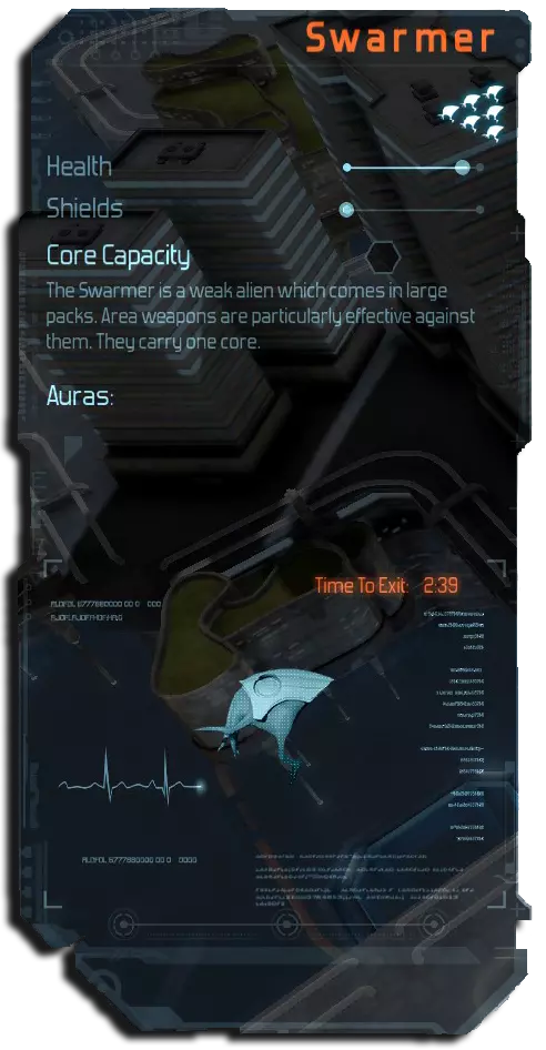 在目前已公布的测试关卡中,出现了不少从《防御阵型:觉醒》回归的“老面孔”敌人。 有什么新变化呢?现在你可以看到外星人完成前往核心并撤离地图所需的时间。 此外,你会注意到有一个【光环】部分,这似乎与强化道具或增益效果有关。这些光环的具体性质尚未确定,因为当前测试版本中似乎尚未实装,但预计它们会改变每个外星人的 strengths 或 weaknesses,从而增加更多变化,并且可能与其他光环组合形成更致命的效果。