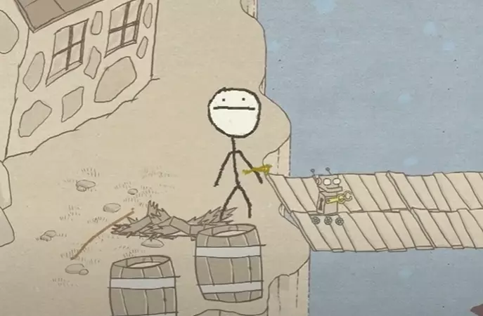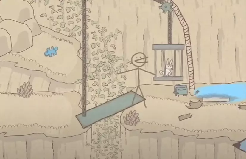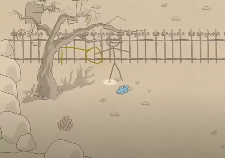火柴人和平主义者 ——绕过犰狳到达宝箱,装备灰色铅笔力量的盔甲。拿起并启动机器人钥匙 • 谜题位置 - 其中一个宝箱