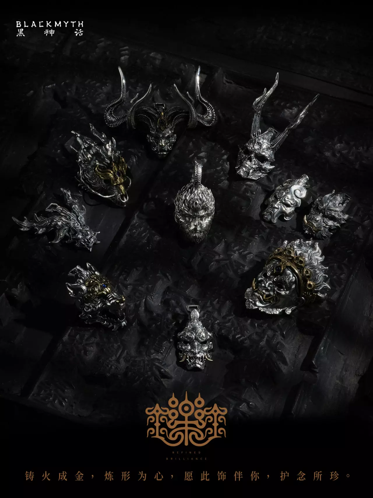 【黑神话吊坠系列合集】 黑神话《黑神话:悟空》天命人吊坠(S925银版)售价:1288元 黑神话《黑神话:悟空》天命人吊坠(白铜版) 售价:298元 黑神话《黑神话:悟空》吊坠配件-大力王面(白铜版) 售价:228元 黑神话《黑神话:悟空》吊坠配件-神珍·藏风兽面(白铜版) 售价:158元 黑神话《黑神话:悟空》吊坠配件-上品·藏风兽面(白铜版) 售价:188元 黑神话《黑神话:悟空》吊坠配件-白脸子(白铜版) 售价:188元 黑神话《黑神话:悟空》吊坠配件-鳖宝头骨(白铜版) 售价:198元 黑神话《黑神话:悟空》吊坠配件-神珍·行者戒箍(白铜版) 售价:158元 黑神话《黑神话:悟空》吊坠配件-青铜猴面(白铜版) 售价:198元