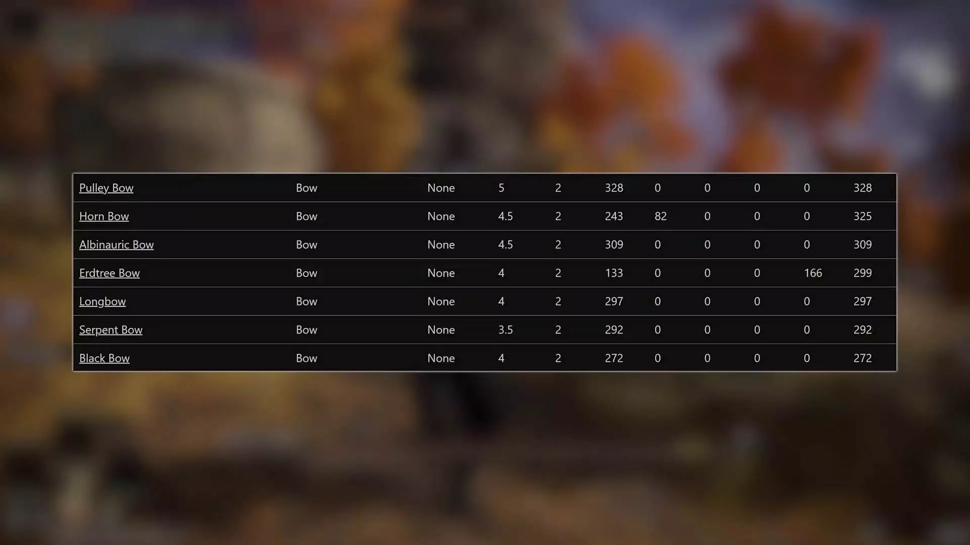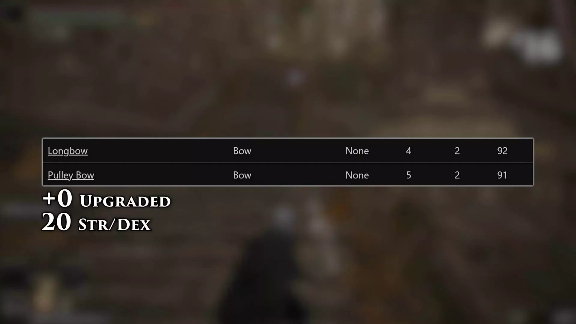 说实话,对于武士开局时从地上捡的那根破树枝,我本没抱太大期望,但不知为何,用过长弓后还是感到有些失望。或许是其他初始武器在游戏前六个小时里一直陪伴着我,让我产生了一些不切实际的期待。又或者是我算错了——即便反复核对,理论上长弓在+0状态下的总伤害确实应该比滑轮弓高。但事实证明,问题就出在这里。