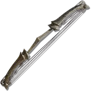 关于这把弓,我实在没什么好说的,它几乎在所有方面都比复合弓退步了。尽管它在物理属性的加成上输给了复合弓,却需要更高的敏捷属性,而且这种情况从未改善。说白了,它就是换了个皮的复合弓,攻击力还低了一点。我猜它可能轻了半磅,但就像我之前说的,你几乎不会因为这个原因在两把属性相近的武器之间做选择。