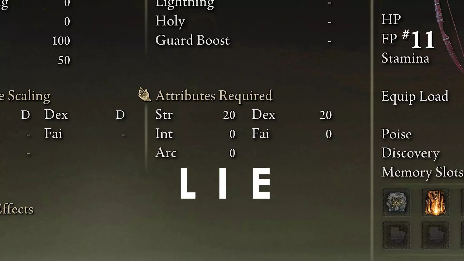 天啊,这玩意儿真的重要到需要占用物品描述的空间吗? 菜单底部中央那个紧挨着“信仰”二字的大写D,难道还不够明显吗? 另外,巨弓随信仰加成这设定,除了用黄金大箭打神圣伤害外毫无用处,因为在这破游戏里,能用巨弓打出元素伤害的箭只有魔法箭和神圣箭两种。 这感觉就像一场心理操纵,这破事绝对是故意的。 成就19——轻型十字弓