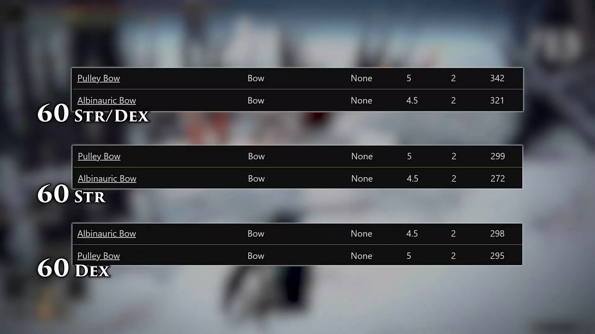将力量和敏捷属性平均分配时,滑轮弓总能造成更高伤害。只有在完全专注于提升敏捷属性的情况下,白化人弓才能领先,但即便如此,只要力量属性超过25左右,滑轮弓就会再次夺回优势。