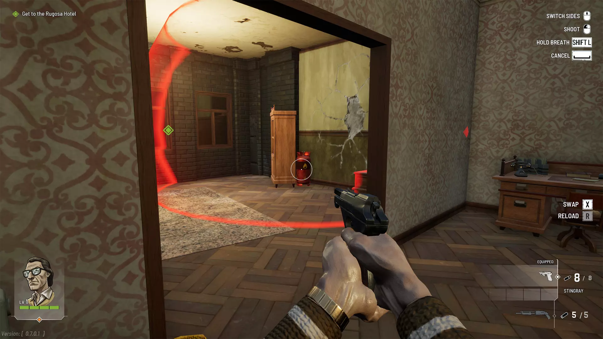 武器类型是战斗中的关键考量因素,某些武器更适合精准打击,而另一些则在近距离作战时更有效。瞄准目标时,准星周围的圆圈表示射击可能命中的区域。这使得弹道散布较宽的武器在远距离时更难使用。