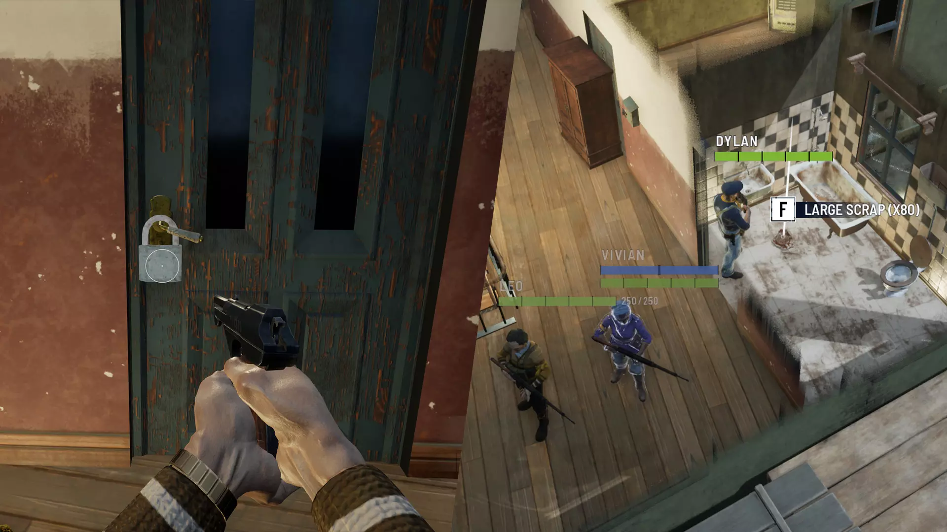 在某些情况下,你可能会发现所在一侧的门上有锁。你可以按下右键进入第一人称模式,然后左键用武器射击锁来将其打掉。