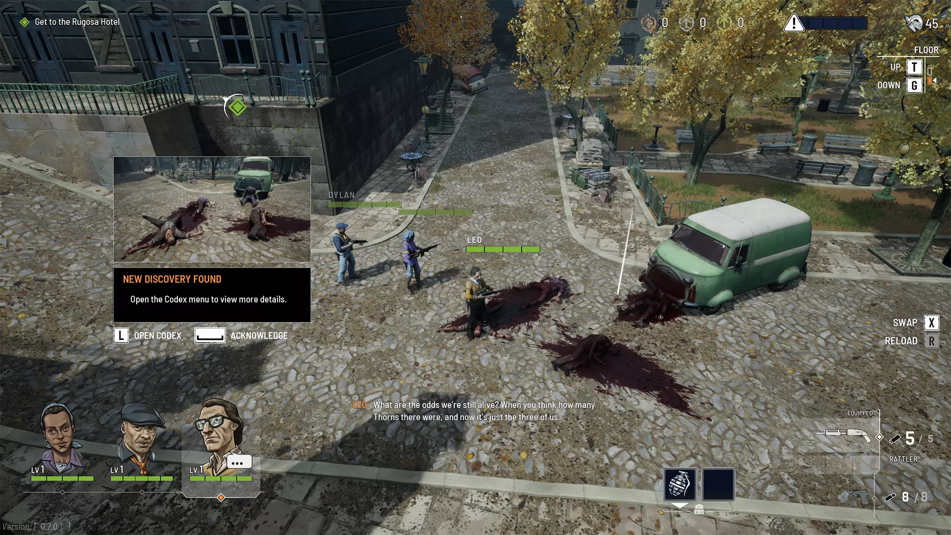 《永不落败》中的城市探索采用自由漫游模式,你可以探索地图上任何已解锁的区域,发现新地点,在街道和建筑中搜寻战利品,调查发现物以揭开入侵前冲突的细节,获取经验值提升团队等级。 在鲁戈萨城移动时,可使用WASD键控制方向,按住鼠标中键旋转镜头,或通过QE键调整视角以适应狭窄街道。若想在鲁戈萨的街道上快速移动,按住空格键即可 sprint。 在战斗或探索中遇到多层建筑时,滚动鼠标中键可升降视角,查看相邻楼层。你也可以使用T键查看上层,或使用G键查看下层。最后,使用TAB键可随时切换荆棘小队的领队。