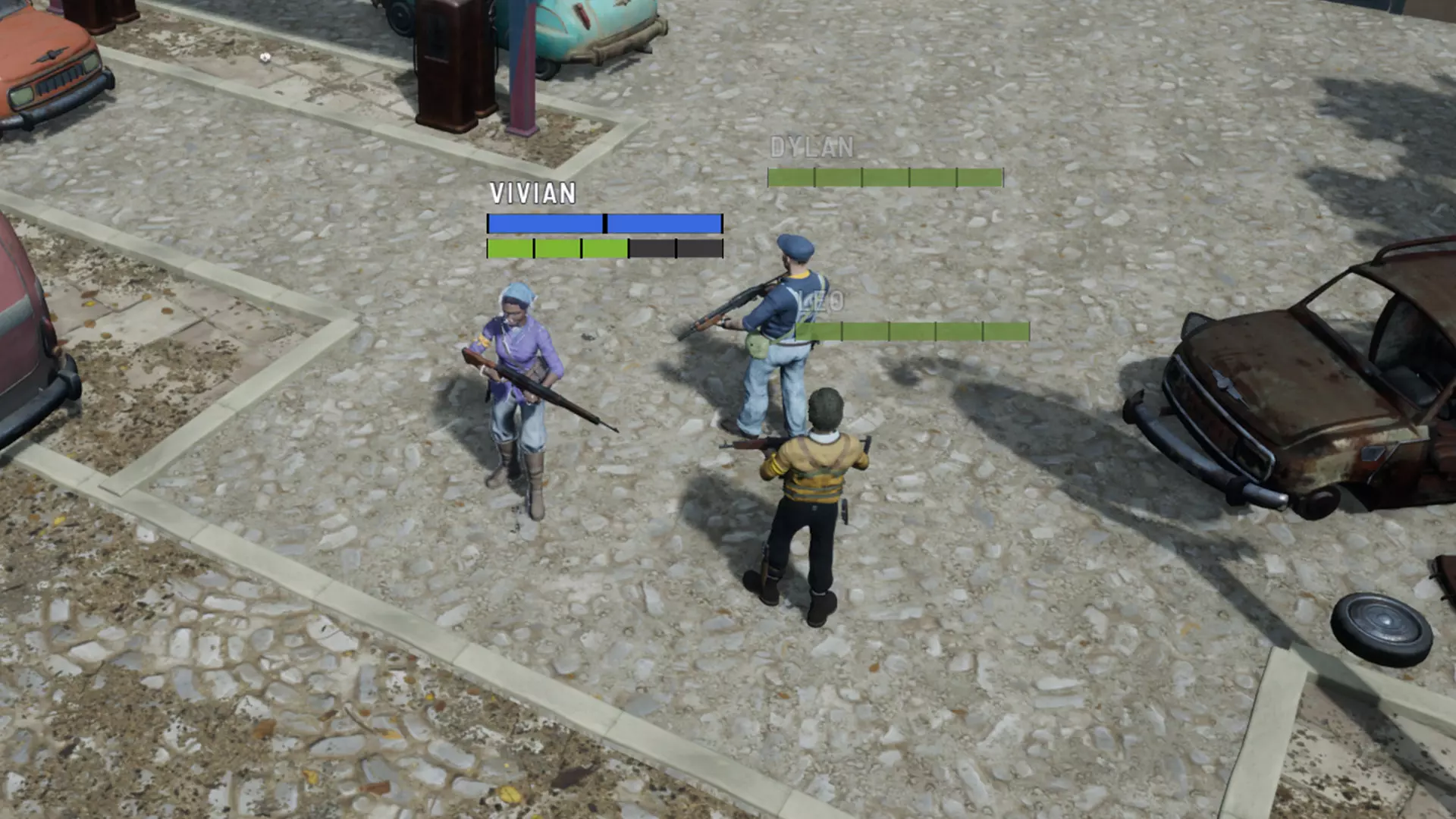 战斗围绕行动点(AP)展开。每个角色根据其等级、技能和能力拥有固定数量的行动点。战斗中的每项行动都有行动点消耗,无论是从一个位置移动到另一个位置、使用技能、射击武器、装填弹药,还是使用绷带和手榴弹等物品。结束回合时,最多可将5点未使用的行动点结转至下一回合。
