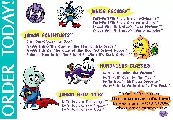 1992年 适用于Windows电脑/MS-DOS电脑及松下3DO 订购方式:咨询当地零售商或拨打1-800-485-1212 在Steam上购买《普普参加游行》,价格6.99美元 或购买《普普完整合集》,价格49.99美元 下载演示版 4. 1992年少年探险家俱乐部