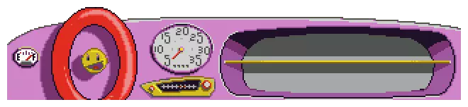 在整个系列中,普普的仪表盘外观基本保持一致。在《普普参加游行》和《普普登月记》中出现的原始风格仪表盘,包含燃油表、速度表、带喇叭的方向盘、收音机和手套箱。 在《普普参加游行》中,随着时间推移,普普的燃油表油量会减少。他可以选择在卡通镇加油站加油。速度表以每5英里/小时为增量进行标注,范围从5英里/小时到35英里/小时,35英里/小时是普普的最高速度。方向盘是红色的,似乎漂浮在仪表盘前方。方向盘中心有一个黄色笑脸,它同时也是普普的喇叭。使用喇叭时,喇叭会发出声音,同时笑脸会变成一个滑稽的表情。收音机配备老式调谐器,并且始终调谐在同一个电台。手套箱是帕特-帕特存放冒险中找到的物品的地方。它被一个位于中间的隔板分成两个部分。当帕特-帕特被问到是或否的问题时,隔板会向前旋转,显示“是”和“否”选项。 不过在《帕特-帕特加入游行》的演示版中,你拥有无限燃料,并且当帕特-帕特被问到是或否的问题时,会显示绿色/红色按钮。 2-1. 攻略指南 - 演示版 游戏开始时,帕特-帕特从收音机里听到卡特镇将要举办宠物游行,他非常想参加。在《妙妙车大游行》零售版中,妙妙车要想参加游行,必须先找到一只宠物和一个气球,还要去洗车店清洗干净。然后按照以下简单路线前往卡通镇的巴尔迪尼杂货店:一直开到遇到一头奶牛,按响汽车喇叭,奶牛就会移开,之后你就能到达卡通镇的巴尔迪尼杂货店了。 路线指引: 上 下 左 右 卡通镇路线: 1. 向左 2. 向右两次 3. 按喇叭 到达巴尔迪尼杂货店后,可以领取免费的鸟食(如果你需要的话)。和巴尔迪尼先生对话,给他送一些杂货,然后选择“是”来完成杂货配送,以结束演示版。 请注意,早期的HE演示版非常短,并且在《妙妙车大游行》MS-DOS版演示版中存在一些已知差异: 1.1. HE/Jr.冒险系列的标志之间存在过渡动画。 2. 光标样式不同。 3. 音乐采用通用MIDI格式。 4. 演示版在完成后会重新开始。 2-2. 游戏物品 鸟食:在零售版中,用于在进入格林街前驱散鸟类。 3. 订购信息