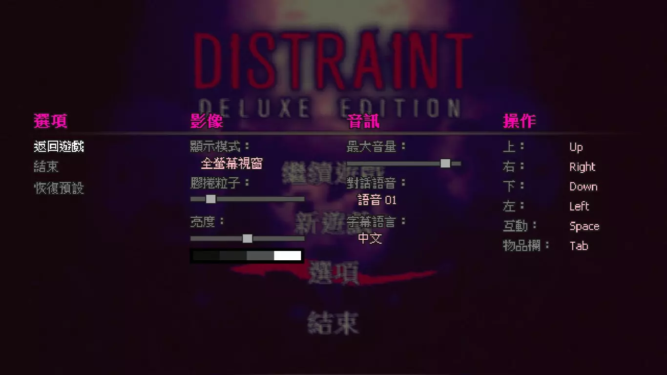 exe。 打开游戏后,进入选项→字幕语言,将语言切换成中文。 请注意:此模组会备份原始文件,请勿移除安装后产生的.bak档。 如何卸载模组:在Steam客户端的库中,对左侧列表的《扣押:豪华版》按右键,点选属性→本地文件→浏览本地文件。这会打开一个名为DISTRAINT的本地文件文件夹。 exe,即可卸载,并还原游戏文本。 模组截图