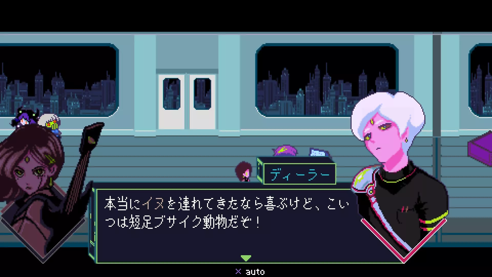 第二章结束后,在电动列车上向经销商出示狗。