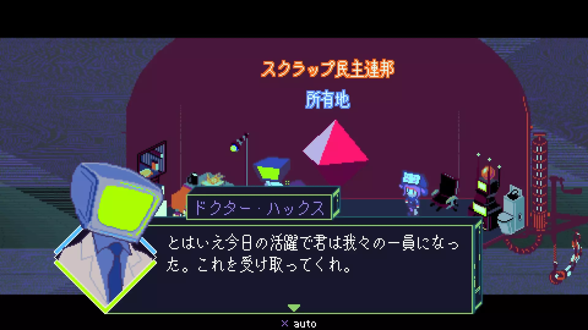 黑客 走上黑客之路 Followed the path of the Hacker. 职业:黑客 时期:第一章 报酬:电视头 只有在第一职业选择黑客的情况下,才会在“废料场”中接到黑客侠作为教程委托的自动贩卖机入侵任务。救出哈克斯博士后,从起始点移动到左下的拖车处再次对话。 前往“奇美拉沙漠”调查损坏的远程组件。