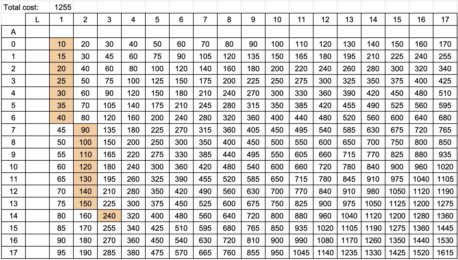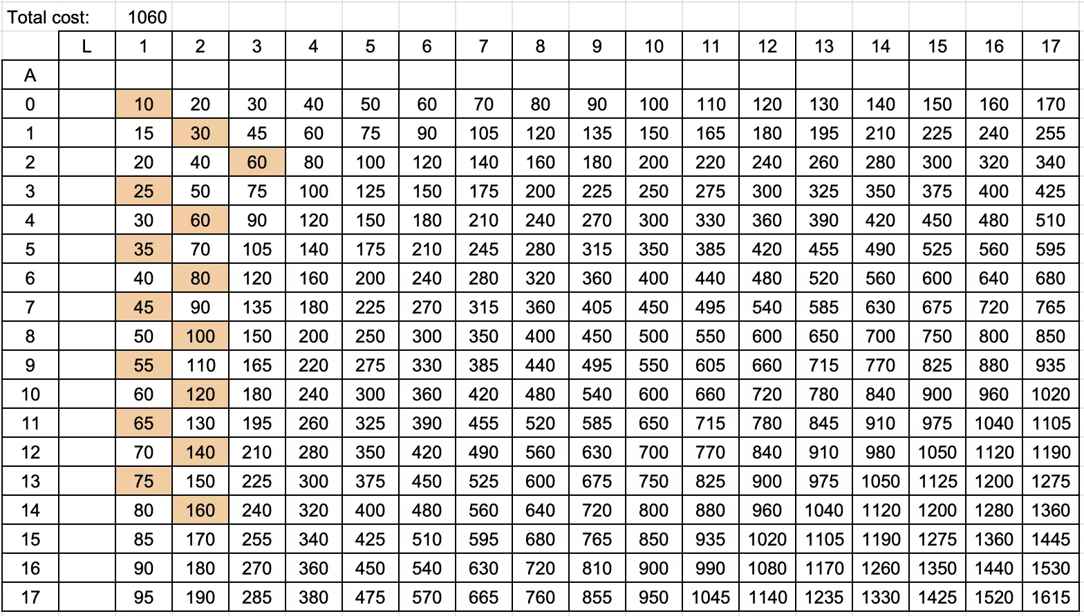 当你将高等级的【PT】尽可能放在前面时,花费为1060。