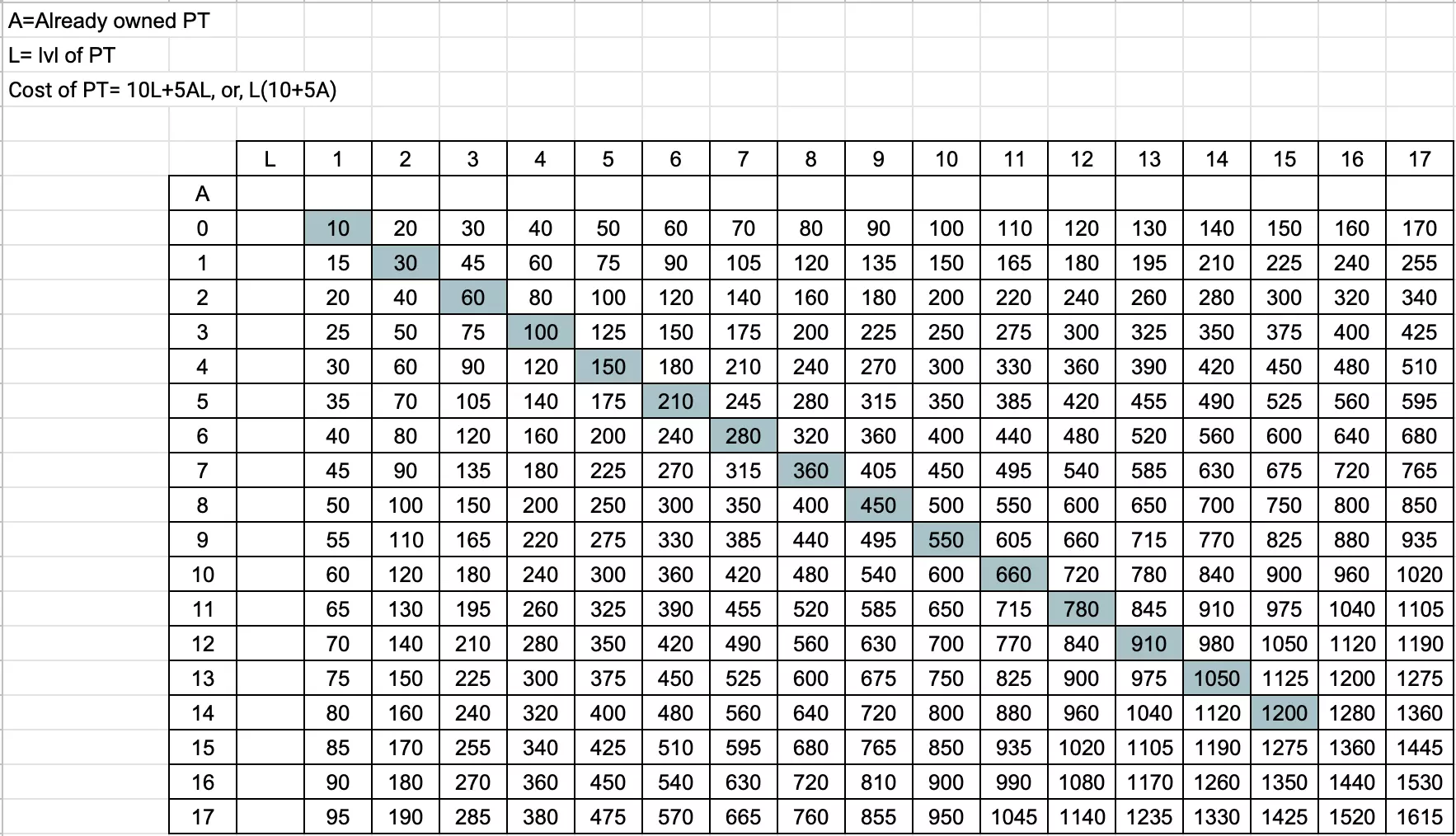 PT的成本计算方式: 设L=电力科技等级,A=已拥有的PT数量, 每个PT的成本=10L+5AL,或L(10+5A)