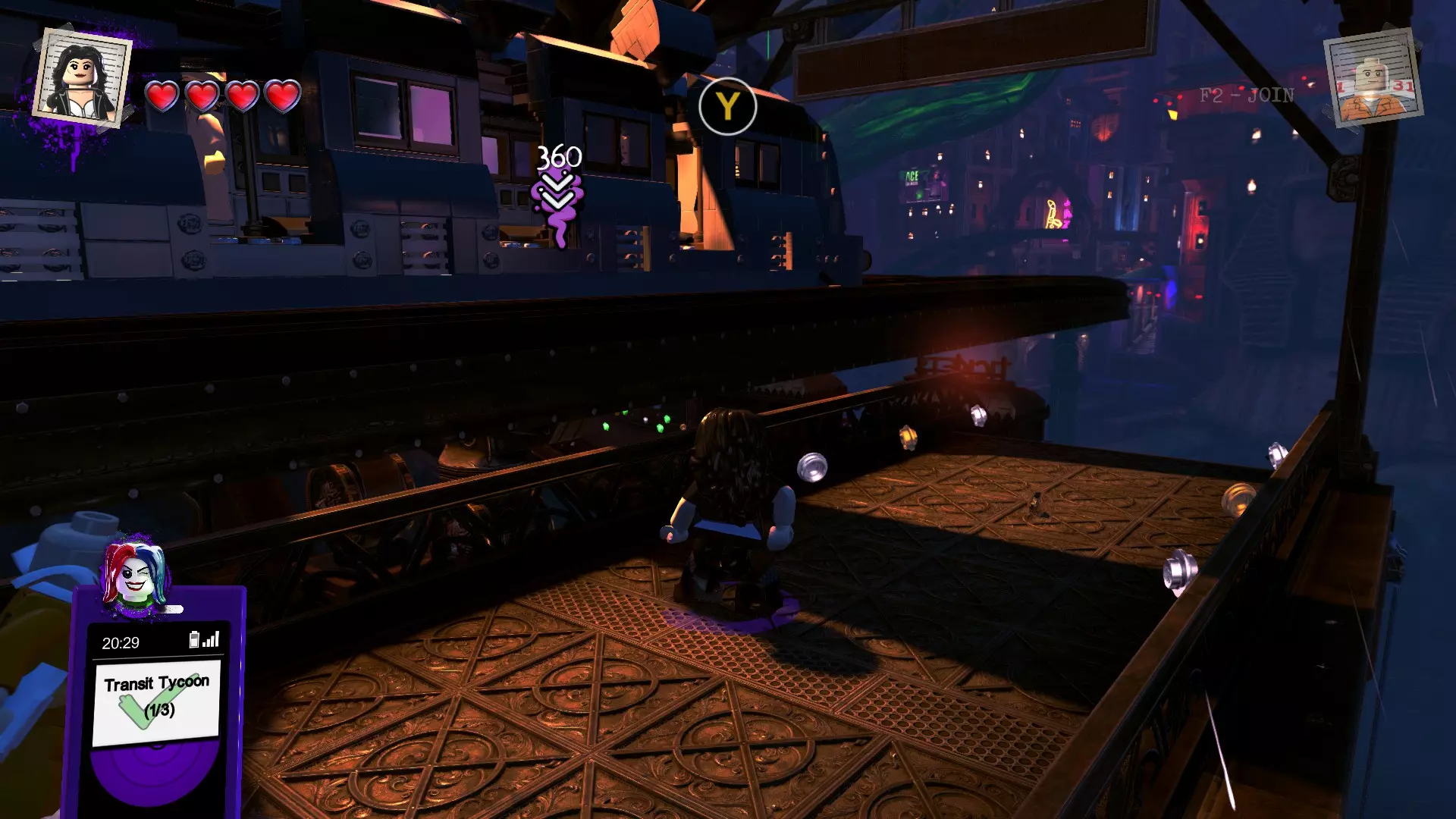 助人为乐:完成枢纽区域的所有任务。任务是地图上显示的【对话气泡】。部分任务需在完成特定事件后才会出现,例如完成某个关卡或收集到黄金砖块。 微笑!:涂鸦所有【完美拍照】海报。在每个关卡中找到图片并进行喷涂。(具体位置信息可参考【图片】板块) 最快的人:完成枢纽区域的所有竞速比赛。部分竞速比赛需满足特定条件后才会出现(例如:完成关卡、解锁角色)。 当他们在过场动画中时……:创建自定义角色。在枢纽区域完成任务时会自动获得此成就,无需刻意追求。 攻城锤:抓住一名敌人并冲撞另外5名敌人。我一开始也很困惑该如何达成,但它突然就解锁了。在早期关卡(1-3关)中,你会遇到多次敌人数量达到5个及以上的情况。按B键抓住一个敌人,然后带着他一直跑向其他敌人,尽量只撞一次就去撞下一个。我感觉如果中间隔着另一个敌人,撞同一个敌人两次可能也有效,但这一点尚未确认! 那个礼帽配那条裤子?更换自定义角色的身体部件5次 在角色自定义界面中,只需切换5种不同的身体部位即可。不要选择一个保存后再选择另一个——必须在“一次换装”中完成。 尽量别刮花它收集所有载具 随着游戏进程自然会解锁。最后一个载具将是一份特别奖励! Hit the Jackpot达成10倍战斗倍率 相当简单,不用特意去刷!只要一直攻击就行。一个方法是在枢纽区域吸引警察注意,然后把他们打跑! Most Wanted:在枢纽区域达到最高通缉等级 和“Hit the Jackpot”类似。不用特意去刷,玩着玩着自然就能解锁。但如果你实在拿不到,就不停地在街上打人来提升通缉等级。 Man of Steel:完成一个关卡且中途不死亡 尽量在没有 Boss 战的关卡完成这个成就!我是在暂停游戏后,回到某个关卡的最后部分时解锁的。使用带有【无敌生命值】的自定义角色会有帮助……除非你忘了怎么飞。;) Thrill Rider:在枢纽区域的欢乐码头乘坐所有的游乐设施 你需要乘坐5个游乐设施,其中有些需要完成特定操作后才会开放。摩天轮 过山车 碰碰车 滑梯(你需要先到达滑梯顶部,然后按B键乘坐) 旋转木马 Ticket to Glide:在中心区域中以蝙蝠侠身份滑翔60秒 登上莱克斯集团大厦顶部,然后向哥谭市/欢乐港水域滑翔,同时按上键来滞空滑翔。 Bad Guy Boogie:激活舞蹈模式并让5个角色跳舞 你需要哈莉·奎茵,使用分屏模式会更有帮助。 通常会有2-3个人在等车,还有一些路人。按住B键直到 boombox(音响)启动。如果你难以让足够多的人跳舞,可以激活第二名玩家,控制另一个哈莉·奎茵前往附近的另一个区域,让剩余的人跳舞。引用自 Alice Sophie 于 20181023:我发现大都会里阿瑞斯所在的咖啡馆是个很棒的地方 成就 - Smile!(在每个关卡中喷涂图片)- 进行中 请继续浏览 - 这里目前没有什么可看的内容 结束语 感谢家人在我小时候给我买电脑。 感谢妈妈生下我。 感谢互联网成就了现在的我。