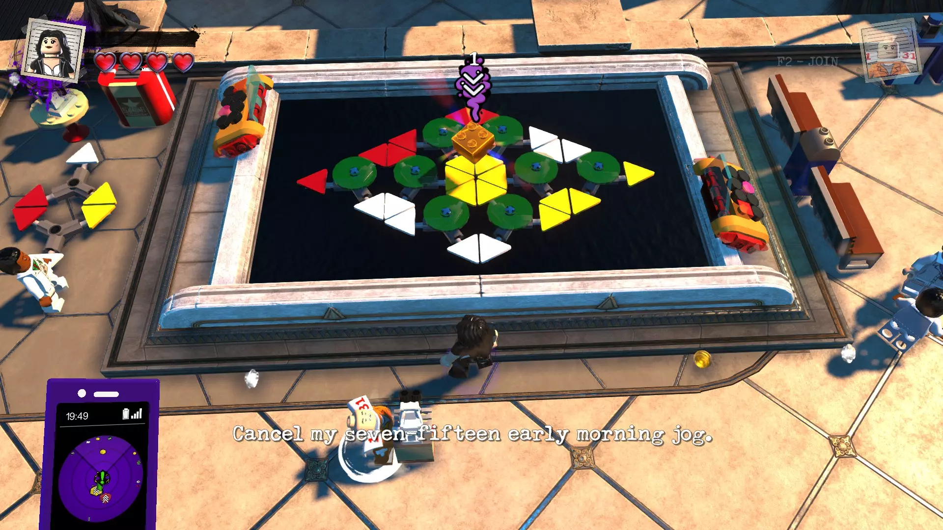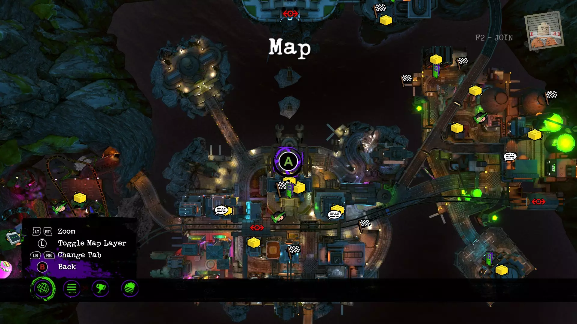 挑战 - 游戏大师 - 制作中 慈祥奶奶为角斗场打造了全新的安保和训练系统。我可不喜欢这个。 你在机场遭遇过那些卑鄙致命的点阵了吗?这一连串的头韵听起来真吓人。 我听说大都会的烈焰漫画社正在为首批顾客举办一场超酷的活动!可惜我不喜欢漫画。 复仇女神们利用地球科技制作了大型闪光灯光游戏!达克赛德宫殿比以往任何时候都更刺激了! 德雷格们对能源工厂的新游戏都很开心。达克赛德肯定是睁一只眼闭一只眼! 有个家伙在阿卡姆森林里玩弓箭玩得不亦乐乎。他说在寻找“新成员”,但我觉得他只是在瞎闹。 快来试试你的运气吧!你的瞄准技术怎么样?这可是欢乐大道最棒的游戏,保证好玩!……大概吧……希望他们别把哥谭东单轨列车那个新票务系统推广到其他地方。那系统已经够复杂的了! 在欢乐大道,他们居然把脏盘子直接砸掉而不是清洗。竟然还有人花钱这么干!哈! 听说游客大老远跑到佛罗里达去喂短吻鳄!明明离贝尔里夫监狱只有一步之遥就能免费喂,何必跑那么远呢! 真不敢相信警察查封了哈莉的大锤游戏!那可是那个破主题公园里最酷的项目! 挑战 - 金色涂鸦 - 进行中 我把那个玩偶盒改装成老板的样子,他肯定会喜欢的!希望它不会和其他那些巨大的小丑头混在一起…… 黑暗君主的永恒王座万岁!愿他永远让敌人心中充满恐惧!阿卡姆疯人院有一些真正令人惊叹的石像鬼。我听说有些从19世纪起就没被动过! 哥谭市为戈登局长立了那座雕像,真是太酷了。这家伙的工作可不轻松! 艾斯化工厂真的很喜欢到处挂招牌,是吧?有个奇怪的小招牌,你可能只能从车道上看到。 如果我是超人,我会在各地都立上自己的雕像!看来他比我谦虚多了,只在大都会有那么一座。 斯莫维尔有着浓厚的 farming 传统,我们确实也展现了这一点!所以我们委托建造了那座巨大的雕像。 沼泽里有很多吓人的招牌。不过有个画着大笑脸男人的招牌还挺不错的。真的能缓和一下气氛。 韦恩岛上的纪念碑真的很棒。我也该为我的家族立一座大理石雕塑纪念碑。或许能引领一股潮流。 红砖 - 制作中 请绕行 - 此处暂无内容 迷你套件 - 制作中 请绕行 - 此处暂无内容 金砖 - 制作中 有些人在获取部分金砖时遇到困难,所以我也会很快(待定)把它们添加到这里... 沼泽 哥谭东区 哥谭 欢乐港 韦恩岛+单岛 阿卡姆 大都会 斯莫维尔 关卡 金砖 - 大都会 尝试三角形:目标是匹配三角形颜色,并在第二轮让所有黄色三角形位于中心。