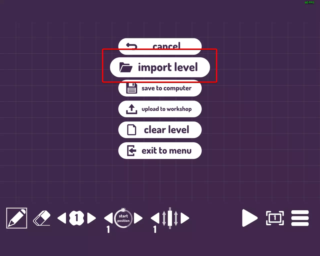 (2)在右下角有一个菜单,打开它并选择【导入关卡】