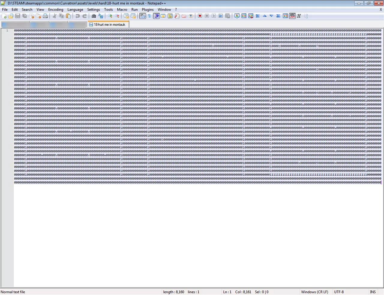 (6)打开文件夹……steam steamapps common Curvatron assets levels,并用记事本打开原始关卡(例如,在我的情况中是“18-hurt me in montauk”)