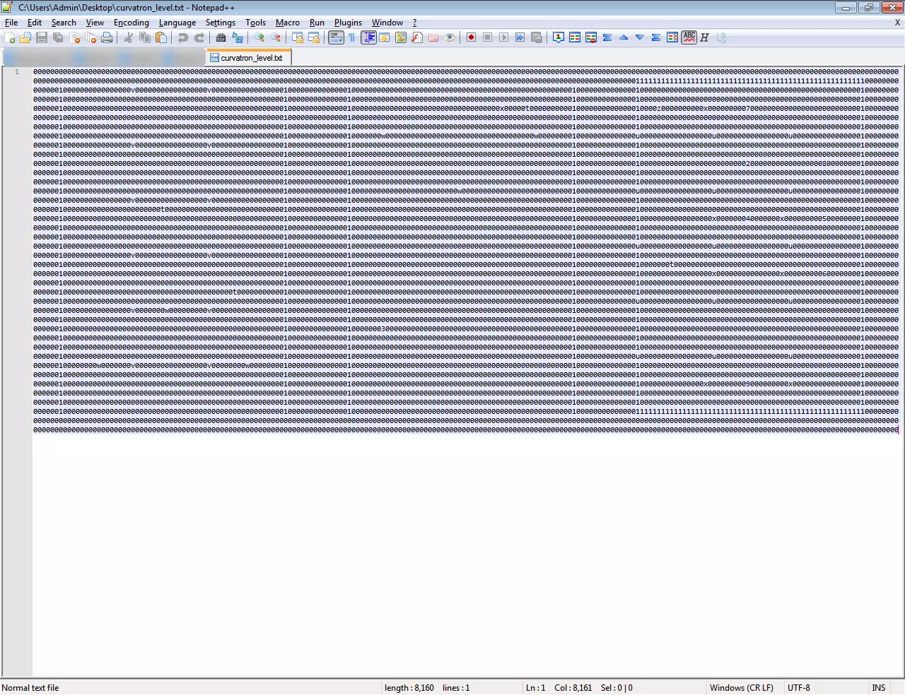 (5)编辑完成后,打开菜单并选择“保存到电脑”。将编辑好的关卡保存到桌面(默认名称为“curvatron_level.txt”),然后用记事本打开。文件内容应显示为ASCII数据。